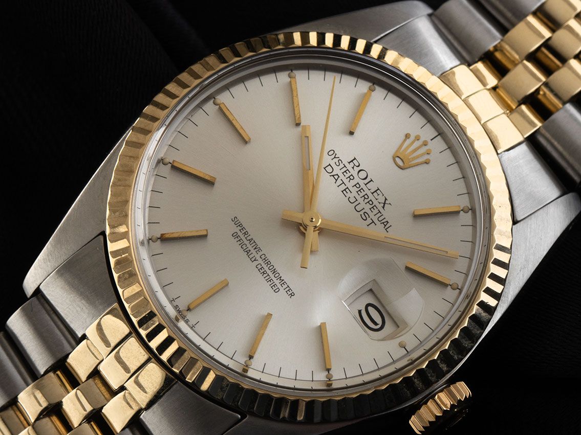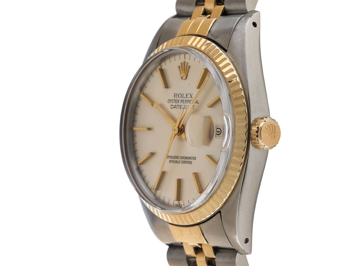 Gehäuse Edelstahl poliert, Gehäusedurchmesser ohne Krone 36mm, Gehäusehöhe 12,9mm. Lünette 18kt Gelbgold poliert und geriffelt. Armband Jubilé Edelstahl / 18kt Gelbgold poliert und satiniert, Rolex Faltschließe Edelstahl mit Hersteller-Logo. Zifferblatt silberfarben mit aufgesetzten gelbgoldenen Indexen und gelbgoldenen Zeigern. Uhrwerk Automatik, Chronometer, Rolex Manufakturkaliber 3035 mit 27 Edelsteinen. Anzeige von Stunde, Minute und Sekunde über Zeiger aus der Mitte mit Sekundenstopp zur sekundengenauen Einstellung der Uhrzeit, Datumsanzeige mit Schnellverstellung unter Glaslupe bei 3 Uhr, open 6/9 (offene 6 und 9 in der Datumsanzeige). Saphirglas kratzfest. Krone 18kt Gelbgold verschraubbar mit Hersteller-Logo. Boden Edelstahl verschraubt. Gewicht der Uhr inklusive Armband 92g, Länge des Armbandes inklusive Gehäuse 160mm. Referenznummer: 16013, Gehäusenummer: 6189XXX, Baujahr: 1979, ID: P249690120226WH-8200, Artikelnummer: 10000084756. Mit Gangkontrolle und kompletter äußerlicher Aufarbeitung von März 2026. Original Rolex Box sowie Beschreibung, Ledermäppchen, Übersetzungsheft, Rolex Chronometer-Siegel und Watchregister Auszug von März 2026, The Watch Register Zertifikat / ohne Eintrag (Internationale Datenbank für verlorene oder gestohlene Uhren). Lieferzeit sofort.