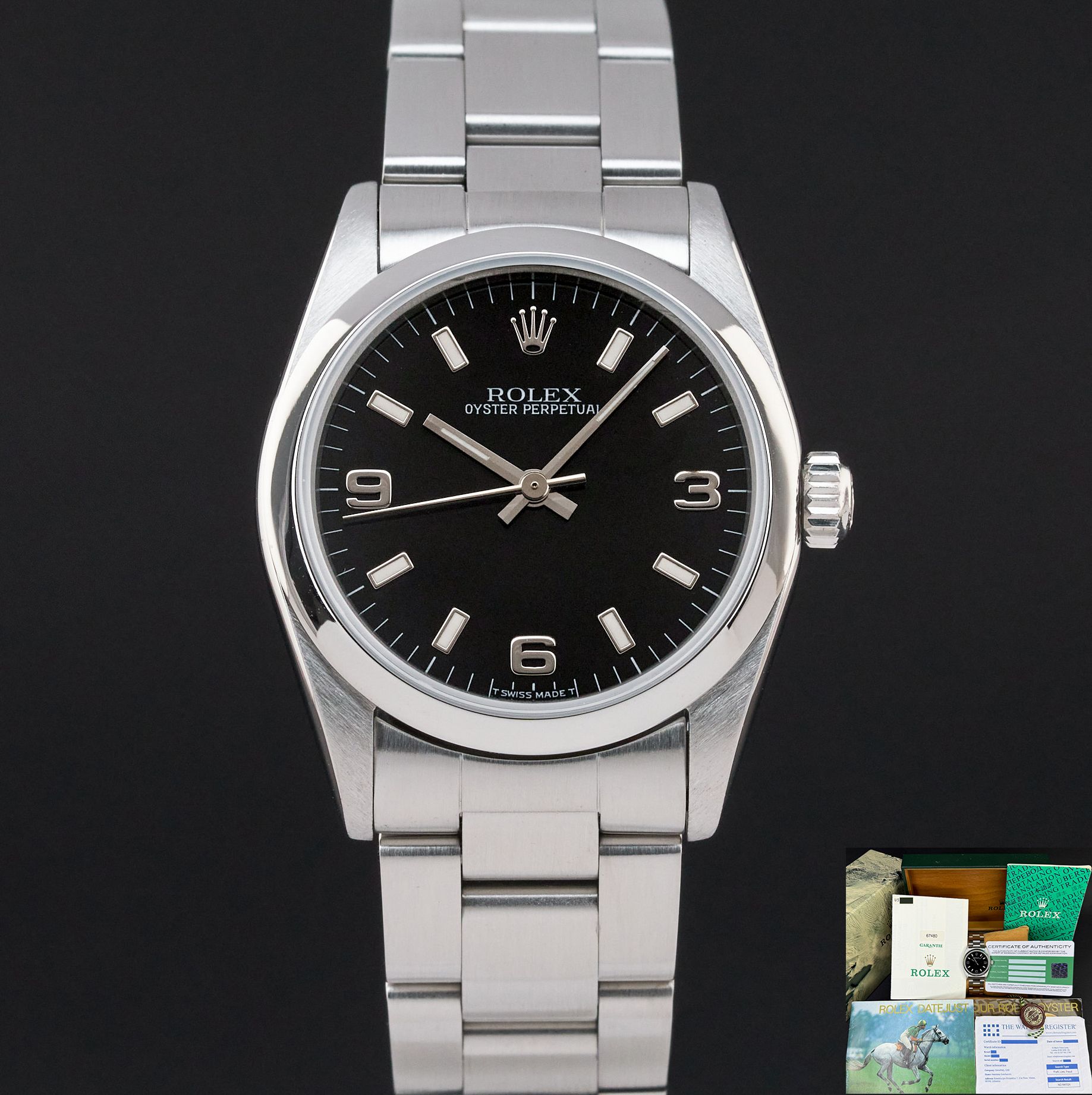 Rolex Oyster Perpetual 31 Rolex Oyster Perpetual, 67480, 31mm, 1998, Steel, Black Arabic dial, Fullset, 1y warranty