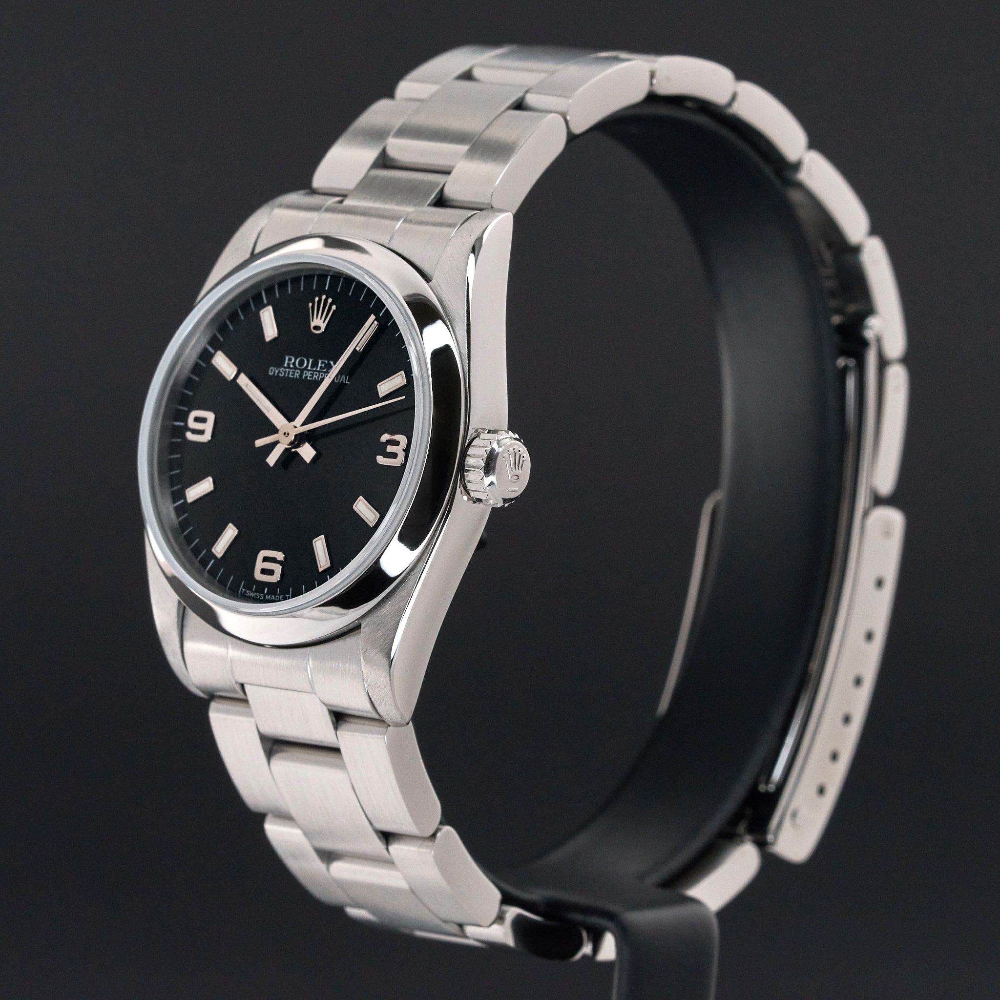 Rolex Oyster Perpetual, 67480, 31mm, 1998, Steel, Black Arabic dial, Fullset, 1y warranty