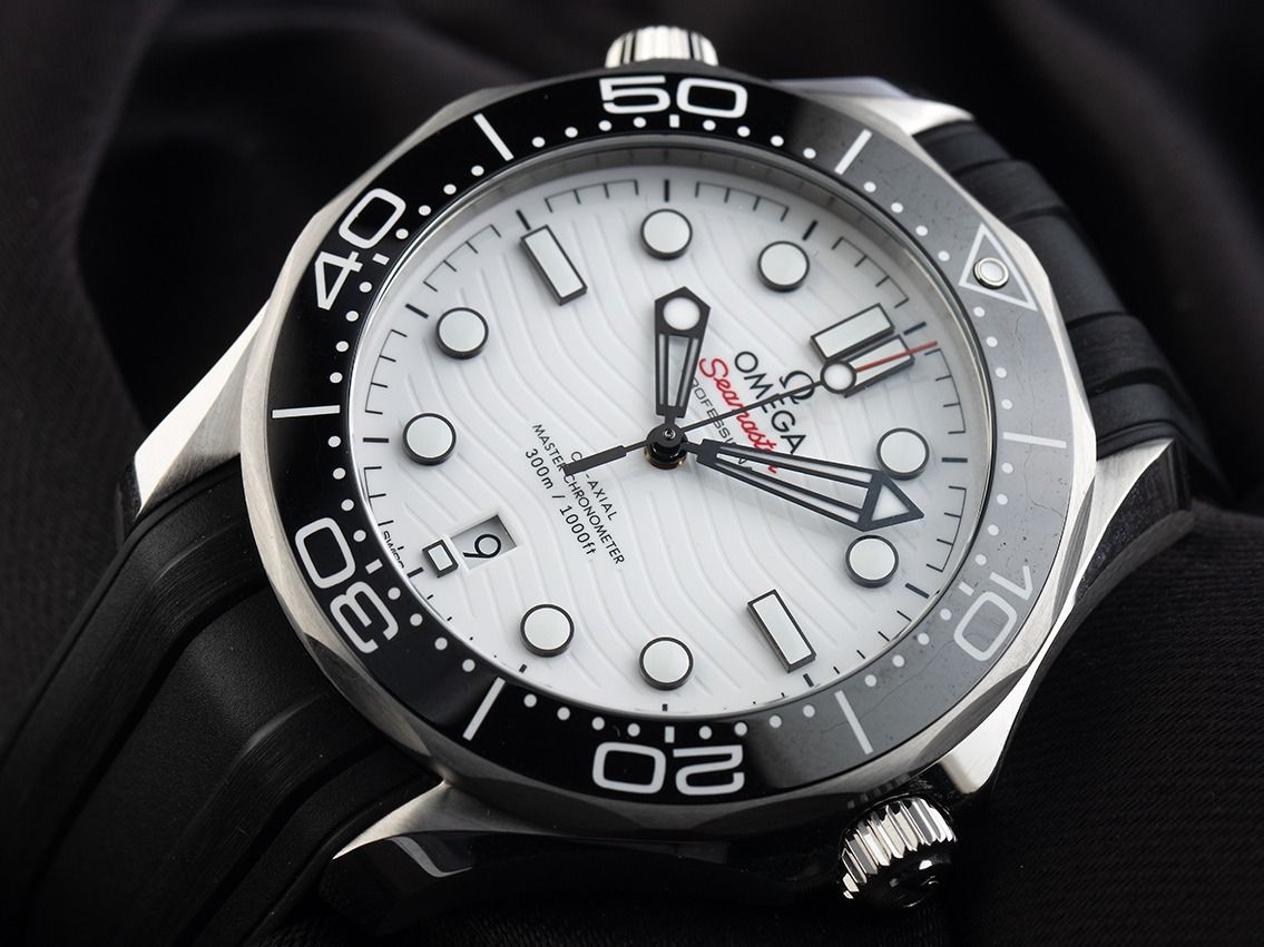 Gehäuse Edelstahl poliert und satiniert, Gehäusedurchmesser ohne Krone 42mm, Gehäusehöhe 13,6mm. Lünette Edelstahl mit schwarzem Keramik Inlay, 60-Minuten Skala und Leuchtpunkt, einseitig drehbar. Heliumventil bei 10 Uhr. Armband Kautschuk schwarz, Anstoßbreite 20mm, Sicherheitsfaltschließe Edelstahl mit Hersteller-Logo. Zifferblatt weiß mit lasergraviertem Wellendekor, aufgesetzten Leuchtindexen und Leuchtpunkten sowie skelettierten Edelstahl Leuchtzeigern. Uhrwerk Automatik, Chronometer mit Zeugnis, Omega Manufakturkaliber 8800 mit 35 Edelsteinen, Co-Axial Hemmung, Gangreserve ca. 55 Stunden. Anzeige von Stunde, Minute und Sekunde über Zeiger aus der Mitte mit Sekundenstopp zur sekundengenauen Einstellung der Uhrzeit, Datumsanzeige mit Schnellverstellung bei 6 Uhr. Saphirglas kratzfest, gewölbt und beidseitig anti‑reflektierend. Krone verschraubbar mit Flankenschutz und Hersteller-Logo. Boden Edelstahl verschraubt und graviert mit Saphirglas Sichtfenster. Gewicht der Uhr inklusive Armband 130g. Wasserdicht bis 30 ATM. Referenznummer: 210.30.42.20.04.001, ID: P246574000326HW-6100, Artikelnummer: 10000085061. Original Omega Box mit Umkarton und Garantie Papiere von März 2025 sowie Beschreibung und Watchregister Auszug von März 2026, The Watch Register Zertifikat / ohne Eintrag (Internationale Datenbank für verlorene oder gestohlene Uhren), Full Set. Ungetragen. Lieferzeit sofort.