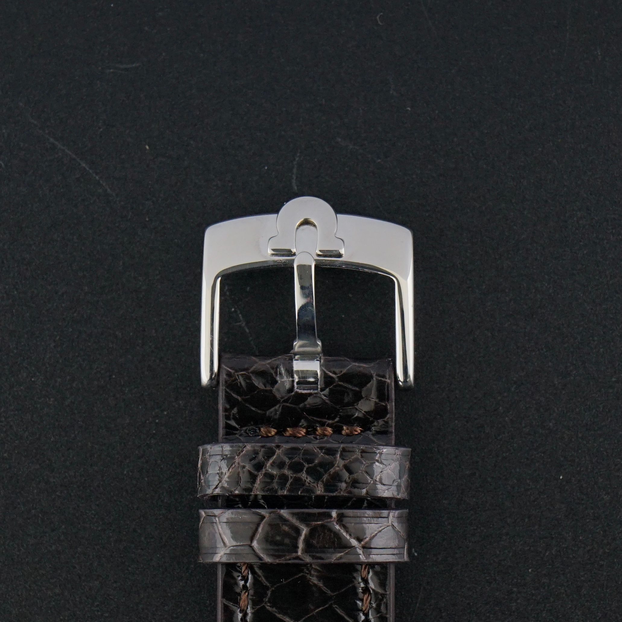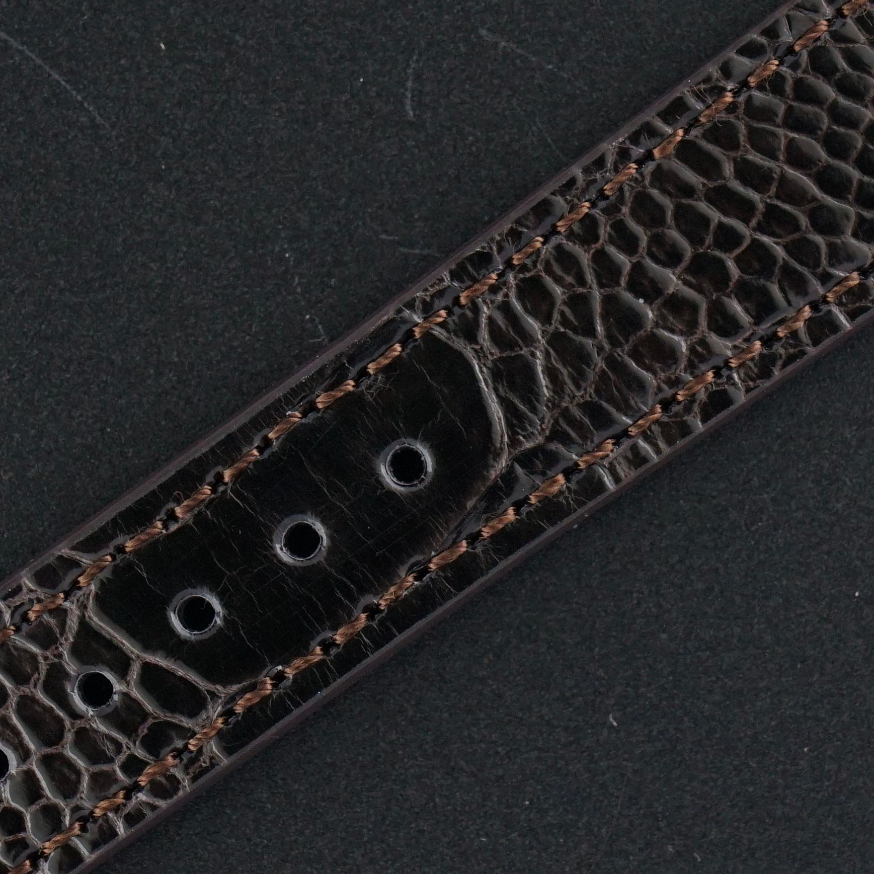 Strap: A grade III brown leather strap with a crocodile motif. (Fits a 12 to 21cm wrist)