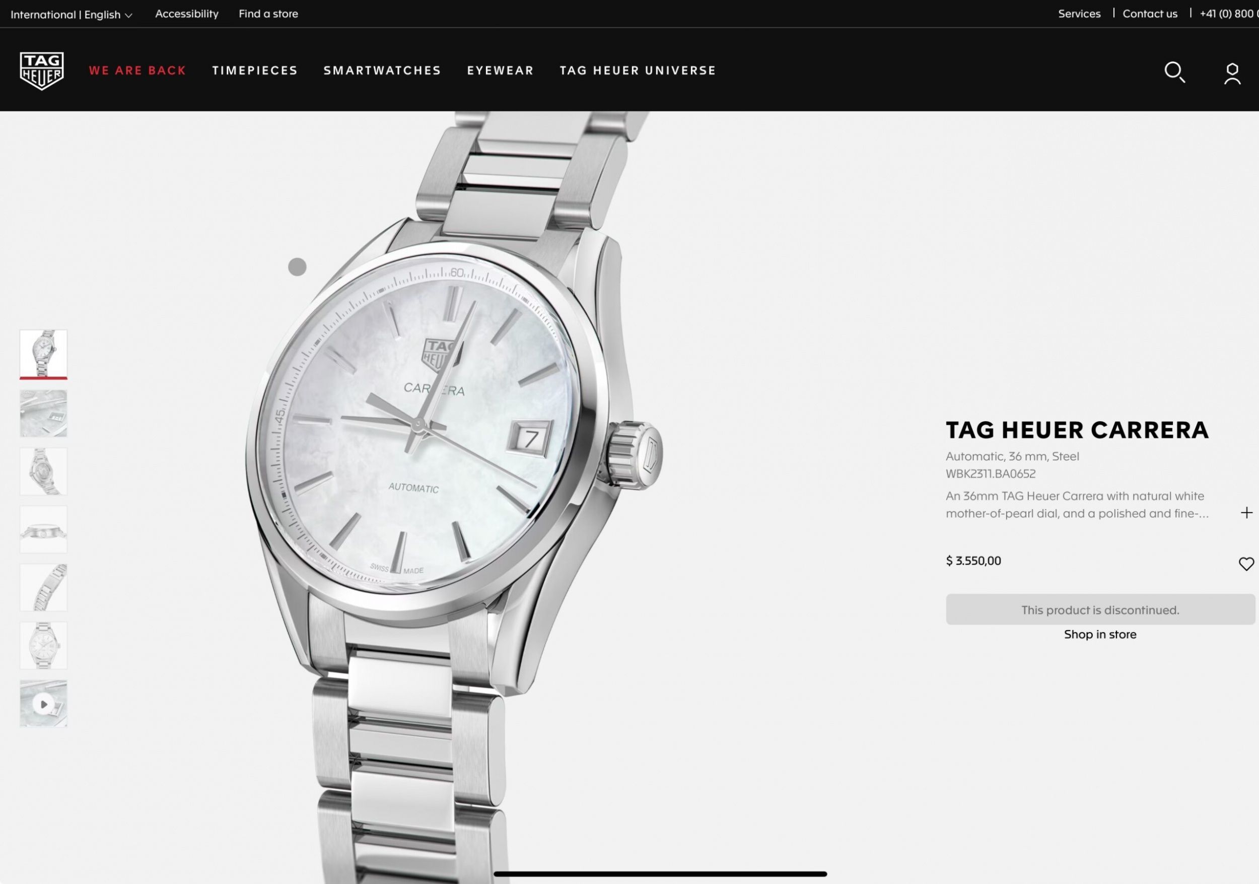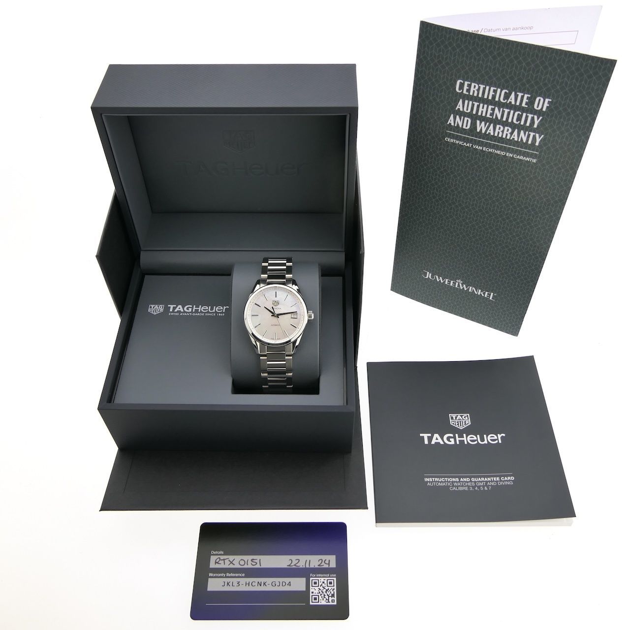 TAG Heuer Carrera, elegant, sporty, and popular! This TAG Heuer Carrera automatic with reference number WBK2311.BA0652 is striking thanks to its mother-of-pearl dial. The dial is truly eye-catching! Combined with the beautiful steel strap and folding clasp, this is a sporty and elegant watch from the Carrera collection. This is the latest Carrera model from the current collection. With a diameter of 36mm, it's a striking and distinctive model for women or suitable for narrow men's wrists. The retail price is a whopping €3500, so this offer is a great start. This watch is brand new, unworn, and comes as a beautiful full set from 11-2024. Sporty, elegant, 100m water resistant, high-quality Swiss Made automatic movement, and a beautiful mother-of-pearl dial. Need more reasons to wear this beautiful watch? This watch features a beautifully finished, high-quality leather strap with a folding clasp that fits wrists of up to approximately 19.5cm. This beautiful watch is brand new, delivered in 11-2024 With a big head cut off (or discount) and delivered as a full set as if it came straight from the store with TAG Heuer box, outer box, TAG Heuer warranty card, booklets and accessories with a 1 year warranty (the TAG Heuer factory warranty is 2 - 5 years depending on activation).