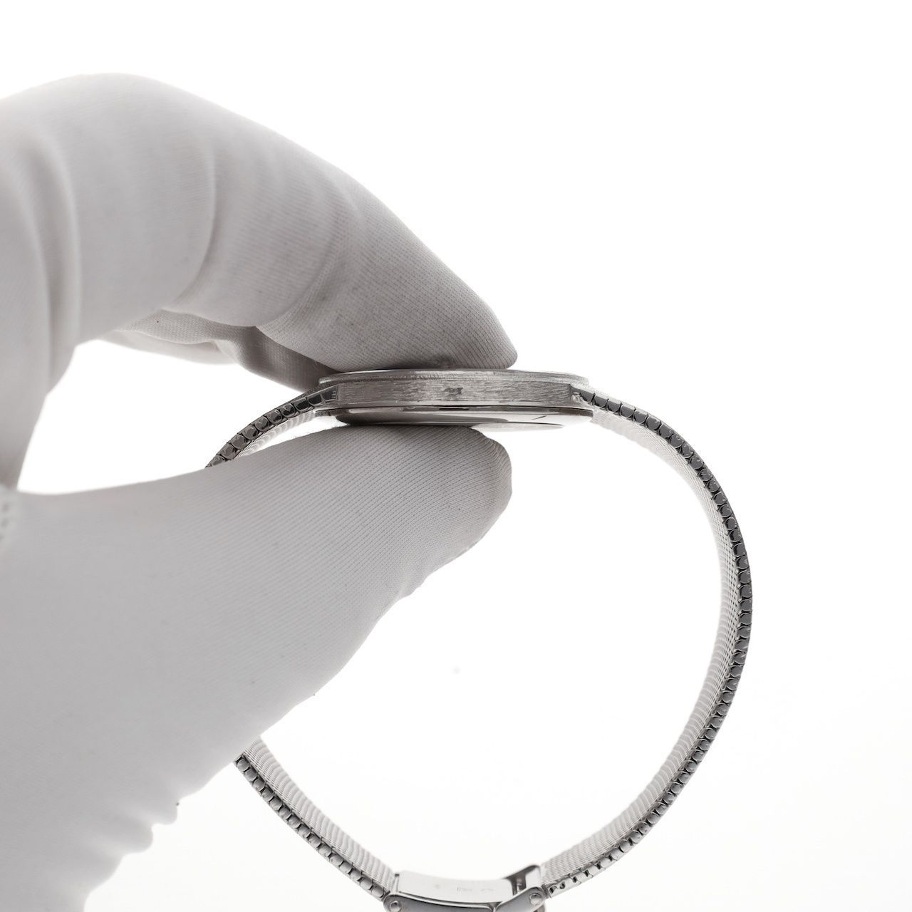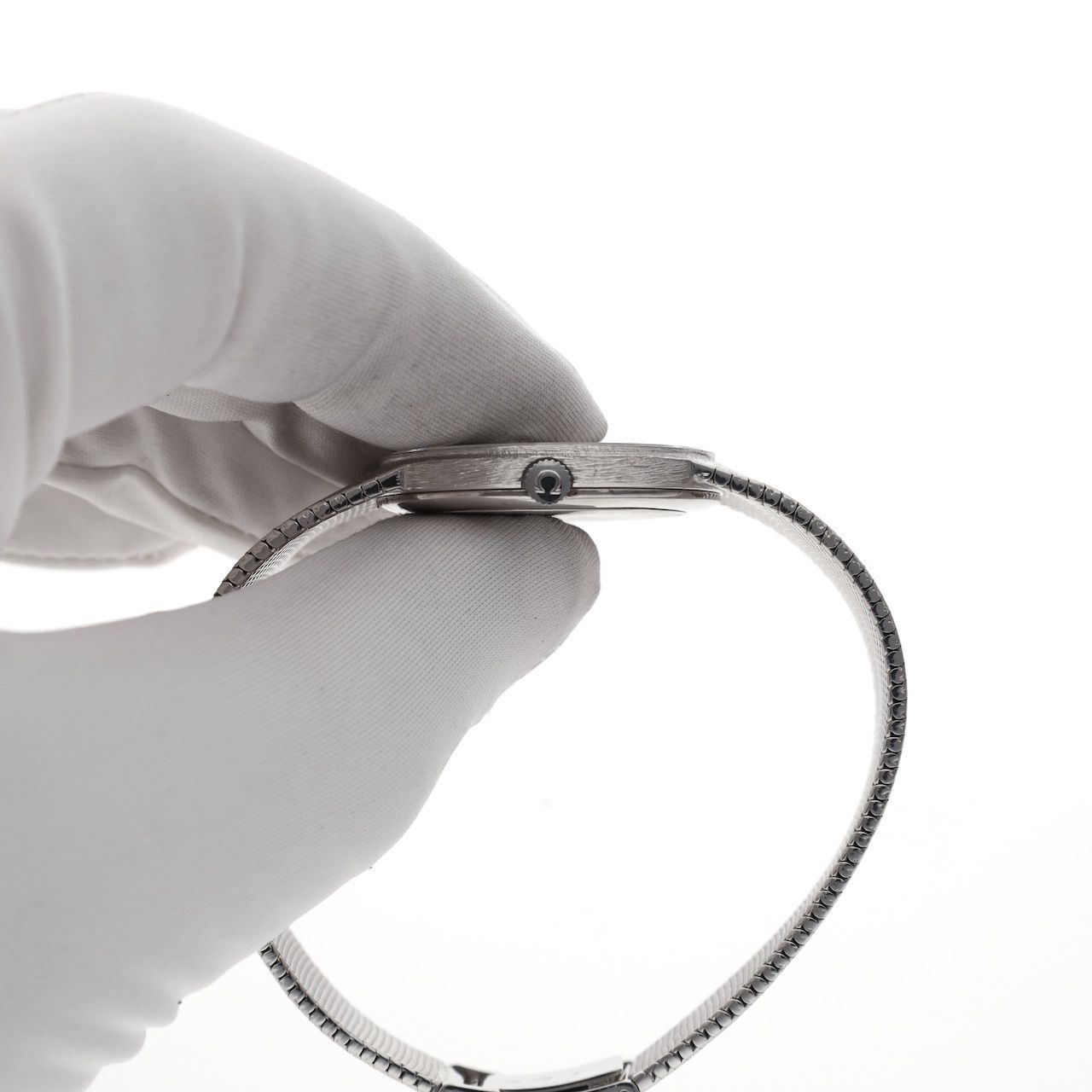 What a vintage gem! This beautiful Omega De Ville men's watch in 18k white gold features a stunning gray dial, a unique finish, and a silky Milanese strap. This type of watch is also known as a "cocktail watch" and was primarily worn for formal occasions. This immediately explains its excellent condition; this watch has spent more time in the safe than being worn. The excellent condition of the watch is remarkable, especially considering its age of approximately 50 years. This watch dates back to around 1975-1980. You won't easily find a second one; these are unique pieces in exceptionally good condition. The 18k white gold "Milanese" (or woven) strap is also in beautiful condition, very comfortable to wear, and shows hardly any signs of wear. It has a beautiful adjustable clasp and fits wrists from approximately 17cm to approximately 19cm (we can shorten it with approximately one week's additional delivery time). This watch is equipped with a high-quality Swiss manual Omega movement. The movement runs smoothly and is very accurate. It weighs over 79.4 grams in 18k white gold. The watch comes with a vintage Omega box and our in-house warranty report with a 1-year guarantee.