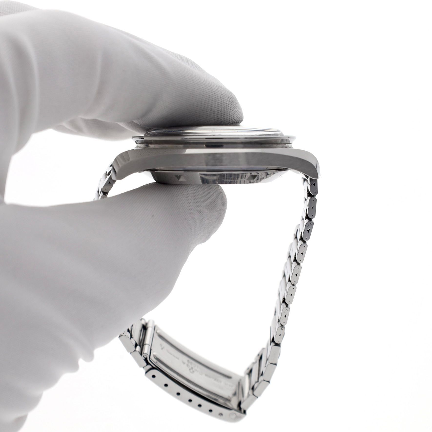 From a private collection comes this remarkable Omega Speedmaster 145.022-69 ST. A wonderful opportunity to purchase a very original Speedmaster with strong collector value. This Omega Speedmaster Professional Moonwatch ref. 145.022-69 ST is a strikingly beautiful vintage piece from the late 1960s. This reference number is beloved by collectors due to its classic execution and its important place in the history of the Speedmaster. What makes this watch particularly attractive is the beautiful brown tropical patina on the original dial. Additionally, the watch is equipped with the correct DON (Dot Over 90) tachymeter bezel, something collectors specifically seek. The 42 mm stainless steel case retains its strong, beautiful shapes and the watch comes on the original Omega 1039 flatlink bracelet. This band is in very good condition and is complete with links for wrists up to approximately 20 cm. Inside, the hand-wound Omega calibre 861 is ticking away. This movement has been professionally serviced by our Omega certified watchmaker prior to sale and functions as intended. The condition is excellent for a vintage Speedmaster. The dial, bezel, case, and bracelet show beautiful and honest signs of use that match the age, with an appearance that is fully balanced. Details - Reference: 145.022-69 ST - Case diameter: 42 mm - Case material: stainless steel - Dial: original dial with brown tropical patina - Bezel: original DON tachymeter bezel - Movement: hand-wound Omega calibre 861, professionally serviced - Functions: hours, minutes, small second, chronograph - Bracelet: original Omega 1039 flatlink bracelet Delivery & Guarantee - Delivered in the original vintage Omega Speedmaster box - Includes our warranty certificate - Comes with 1 year warranty A very original and beautifully aged Speedmaster Moonwatch, for the enthusiast seeking a strong vintage piece with correct details and in good condition.