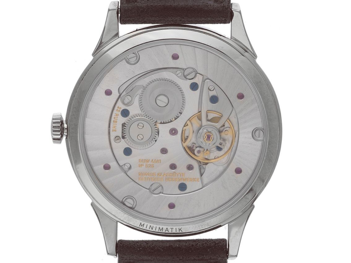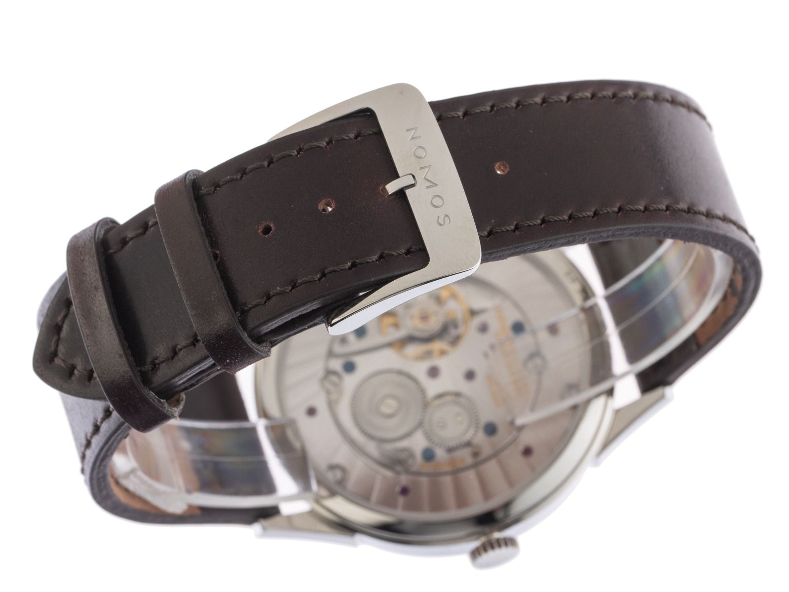 Nomos Glashütte Minimatik Stahl Handaufzug Armband Leder