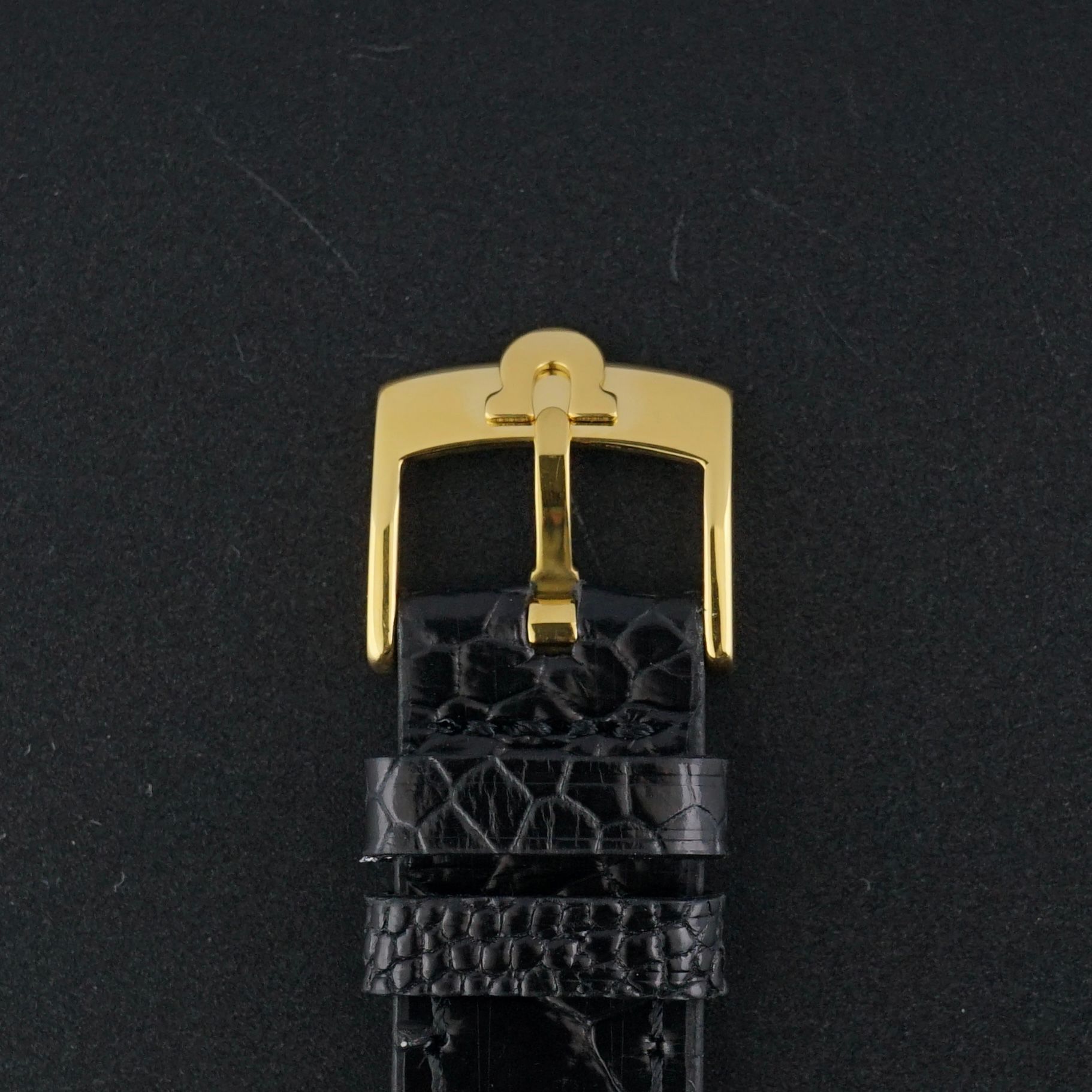 Strap: A grade III black leather strap with a crocodile motif. (Fits a 12 to 20cm wrist)
