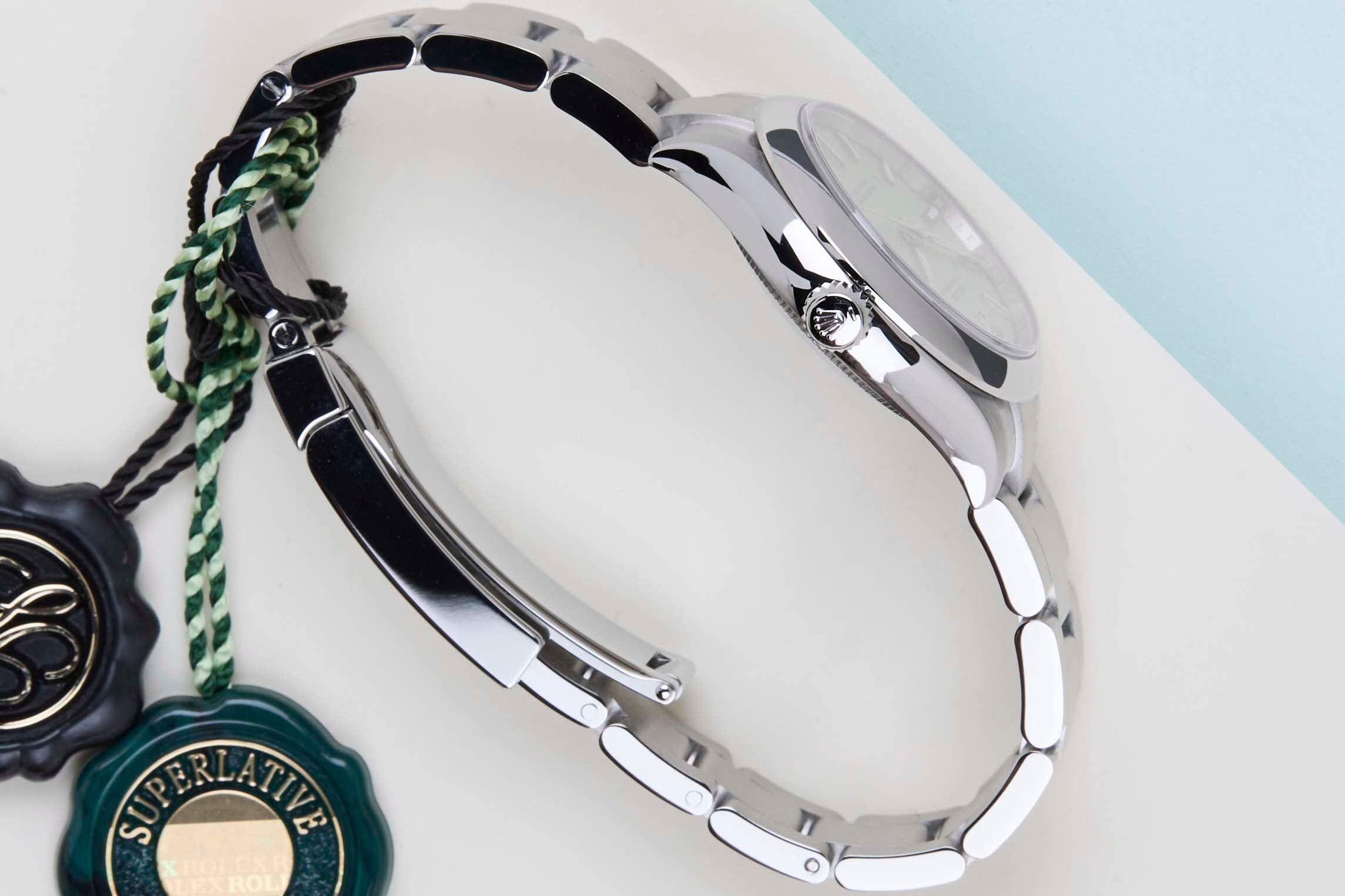 New & Unworn | Full Set | International Rolex Warranty Until December 2030 | Including Original Value Certificate Belgium ADThe Rolex Oyster Perpetual was first introduced by Rolex in the 1930s. It is characterized by its water-resistant Oyster case and self-winding Perpetual movement. The Rolex Oyster Perpetual a simple, yet elegant timepiece that is suitable for both casual and formal wear.This Rolex Oyster Perpetual 31 'Pistachio Dial' was sold for the first time in December 2025.The watch is fully made out of stainless steel. Rolex uses 904L in its steel watches, which is an extremely resistant and highly polishable superalloy.This Rolex Oyster Perpetual 31 is in New & Unworn condition and comes with the original Rolex Warranty Card and box. Furthermore, the watch still has Worldwide Rolex Warranty until December 2030.
