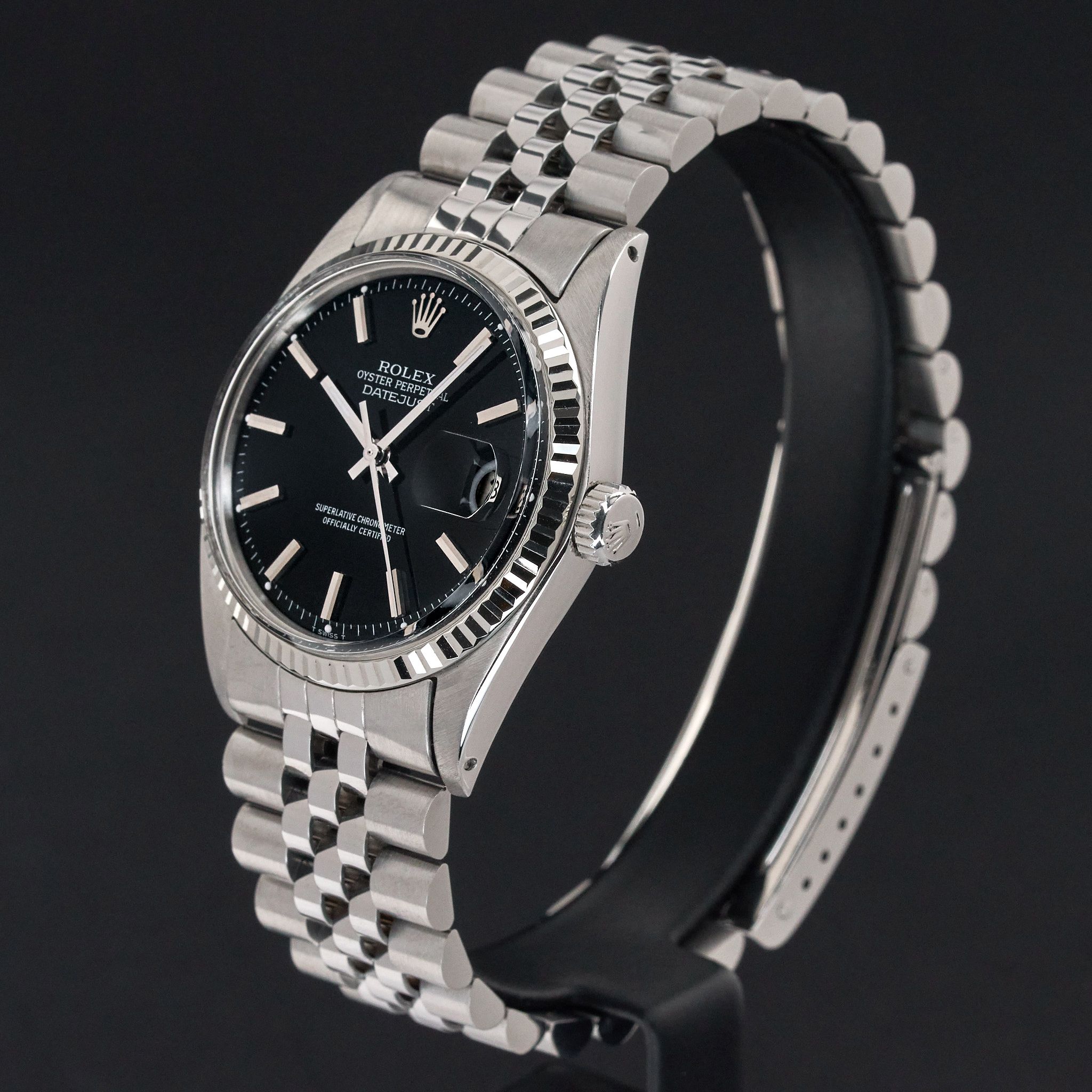 This Rolex Datejust 1601 features a Black dial and is crafted from stainless steel, with a production year of 1971.