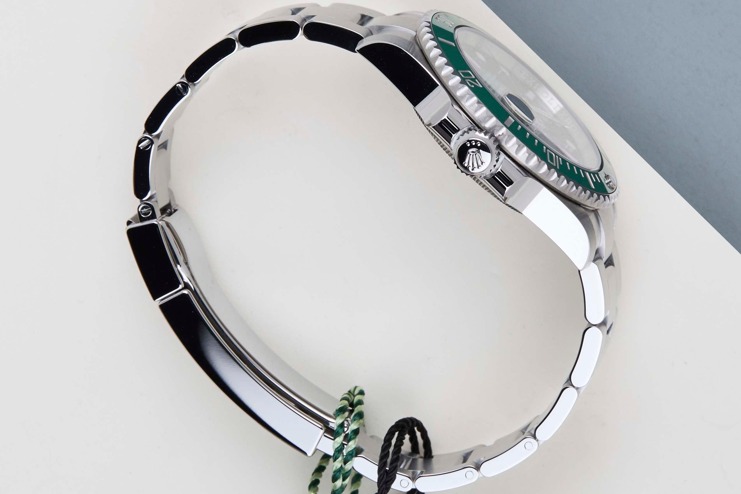 New & Unworn | NOS (New Old Stock) | Full Set | European Warranty Card (LC010 - Switzerland) The Rolex Submariner was introduced by Rolex in 1953. The Submariner is known for its durability, reliability, and precision, and it has become one of the most iconic and recognizable watch models in the world.This Rolex Submariner Date 'Hulk' was sold for the first time in November 2019.The watch is fully made out of stainless steel. Rolex uses 904L in its steel watches, which is an extremely resistant and highly polishable superalloy. This Rolex is equipped with a Chromalight dial which can be recognised by the blue lume. This Submariner Date comes with a green dial and green bezel, with can be derived from the reference 116610LV, Lunette Verte.This Rolex Submariner Date is in a New & Unworn (NOS) condition and comes with the original Rolex Warranty Card, original box and Service papers. Furthermore the watch has been checked by our watchmakers and therefore it comes with one year of Steiner Warranty.