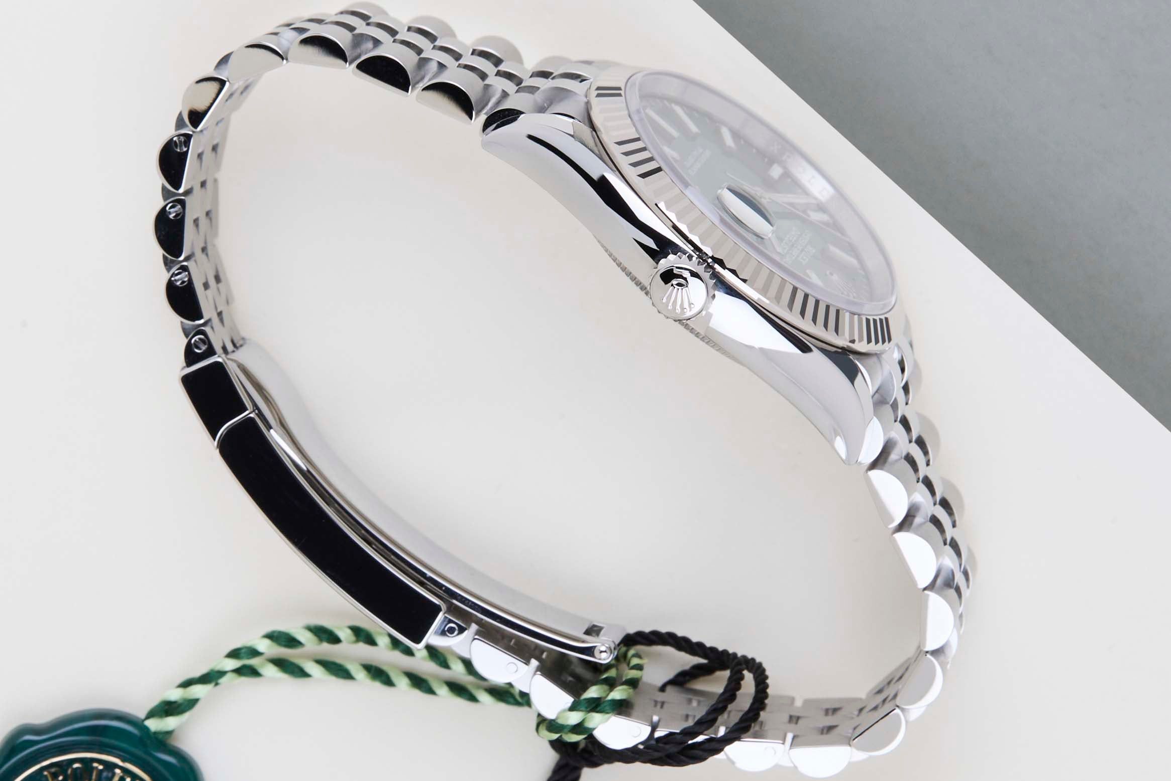 New & Unworn | Full Set | International Rolex Warranty Until March 2031Rolex introduced the original Datejust in 1945 to celebrate the company's 40th anniversary. Due to the various case sizes and materials, the Datejust has been ingrained in Rolex's history and remains incredibly popular for nearly 80 years. This Datejust is made of a combination of 18k White Gold and stainless steel and is fitted with an Jubilee bracelet which is equipped with the Easylink. This extension, allows the wearer to either extend or shorten the bracelet by 5 millimeters, improving the wearability and usability of the watch.This Rolex Datejust 36 is in New & Unworn condition and comes with the original Rolex Warranty Card and box. Furthermore, the watch still has International Rolex Warranty until March 2031.