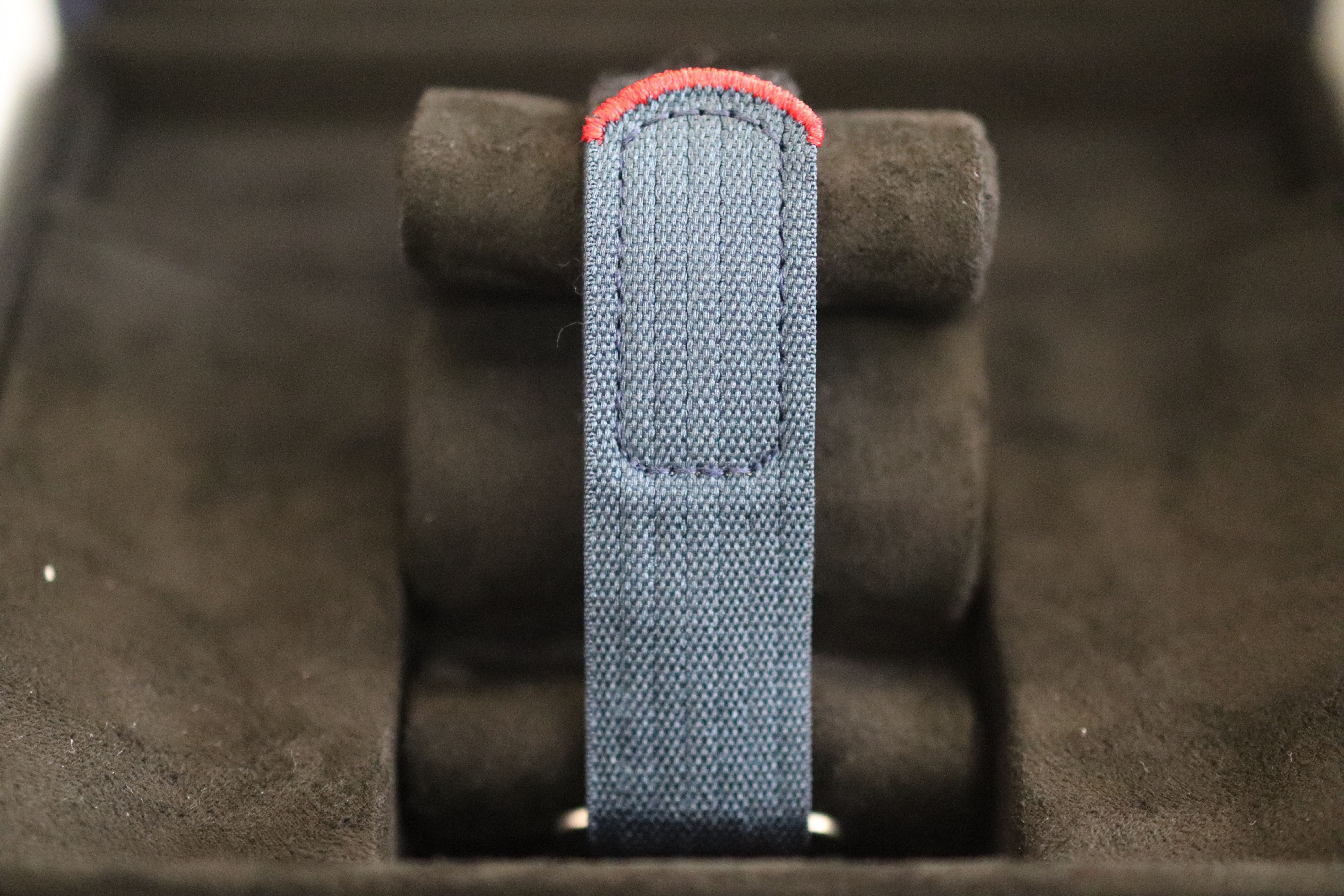 Blue fabric strap with self-gripping fastening system