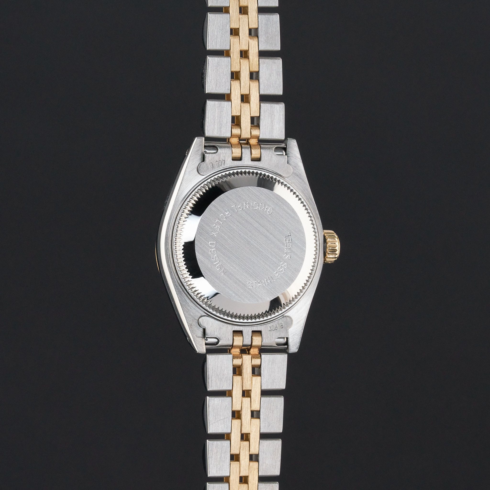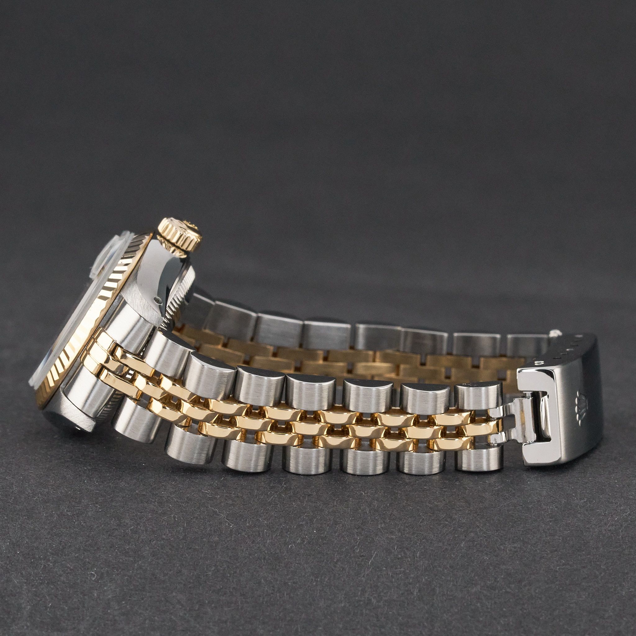 This Rolex Lady-Datejust 69173 features a Silver small diamond dial and is crafted from 18K yellow gold and stainless steel, with a production year of 1993.
