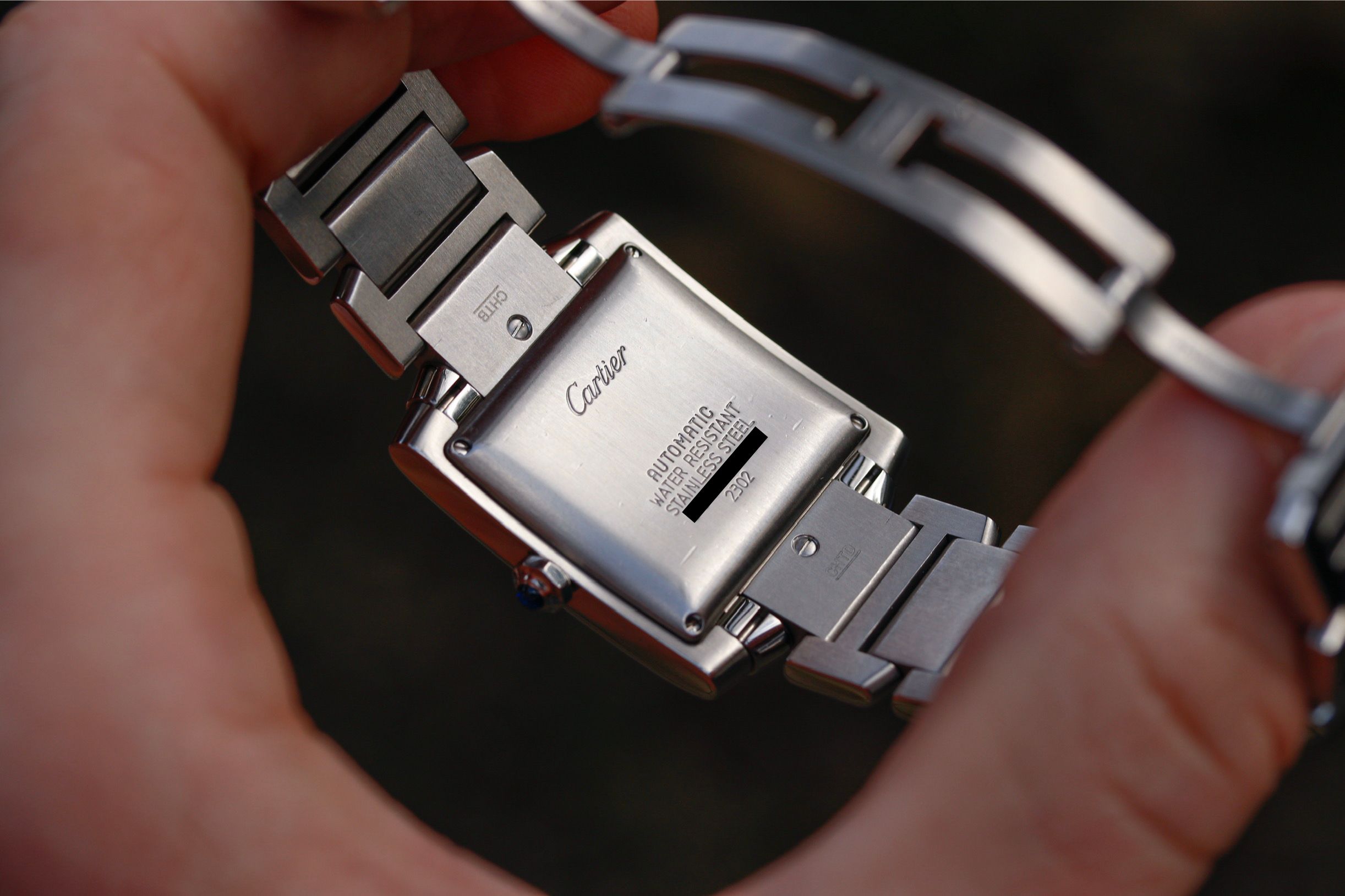The watch has just been fully serviced by our Cartier Certified watchmaker (we are an authorised Cartier Retailer and Service Center). This service included an complete overhaul fof the movement, replacements of all gaskets and refinishing of the case and bracelet. The watch is in very good condition with some faint signs of wear. The watch is in fully functioning condition.