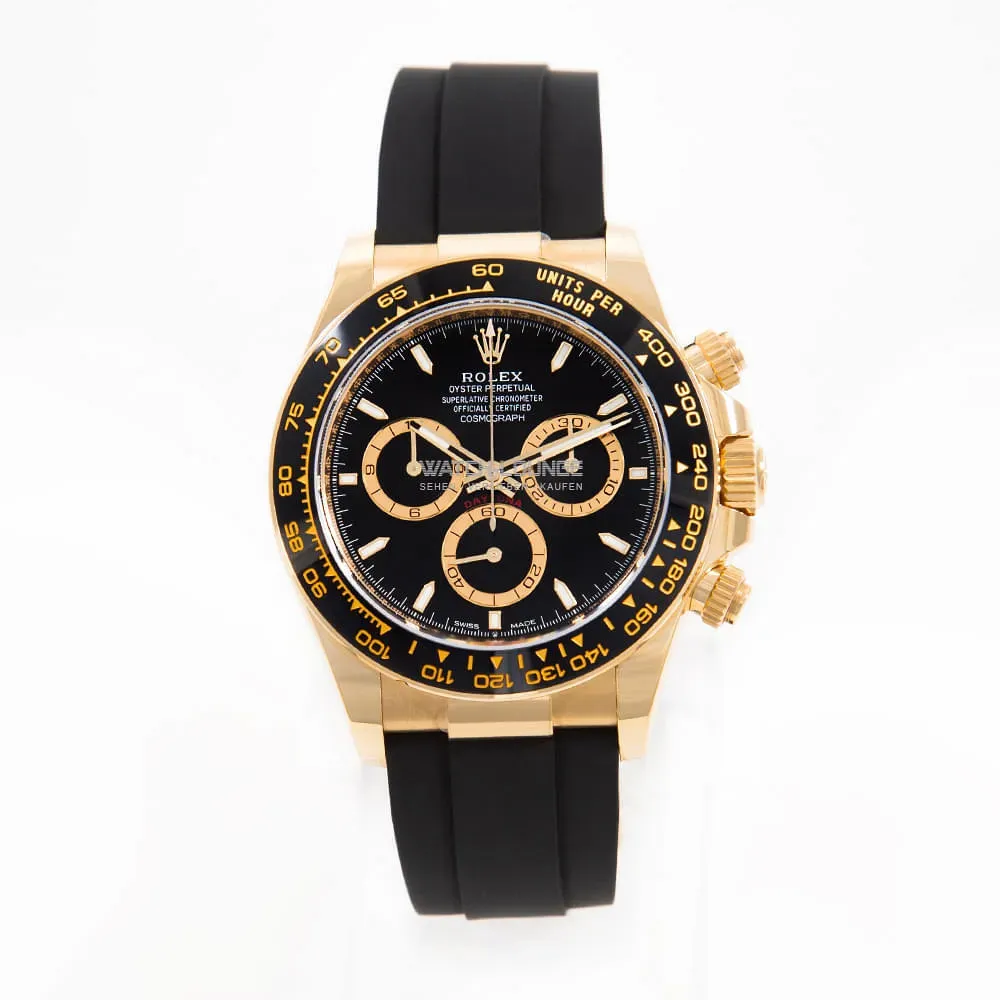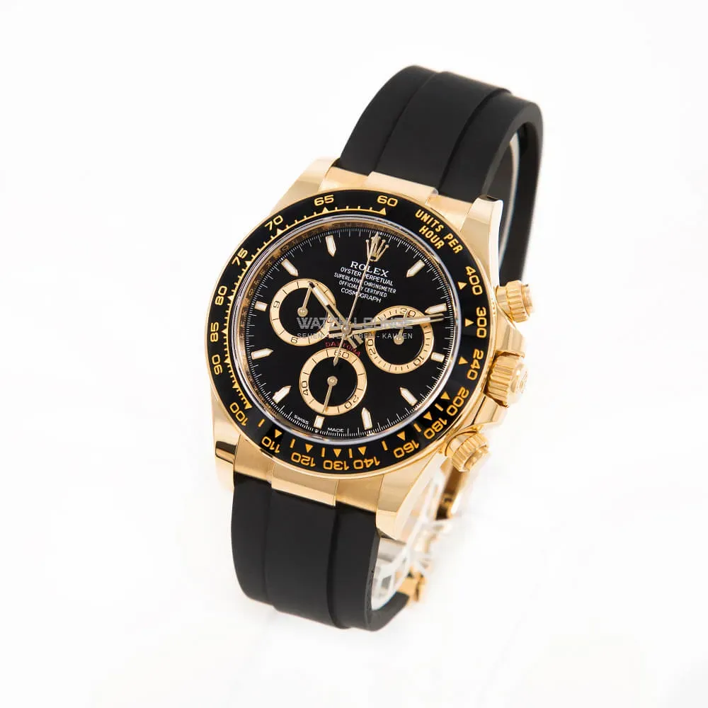 Original Rolex Daytona in yellow gold with Oysterflex strap.