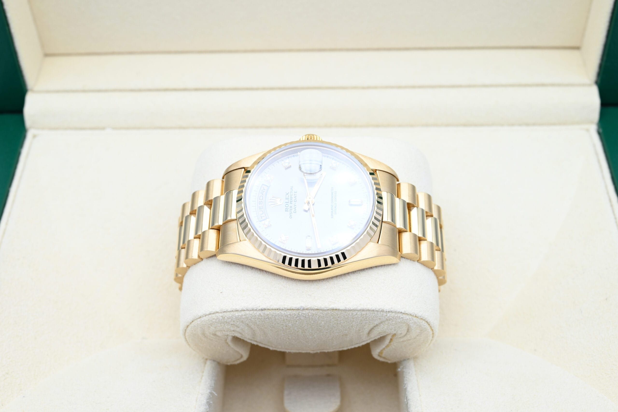 Rolex Day-Date 18238 from 1991 with the grey diamond dial in excellent condition, including the original box and papers.All of our watches have been thoroughly checked by our own watchmaker and serviced when needed.
