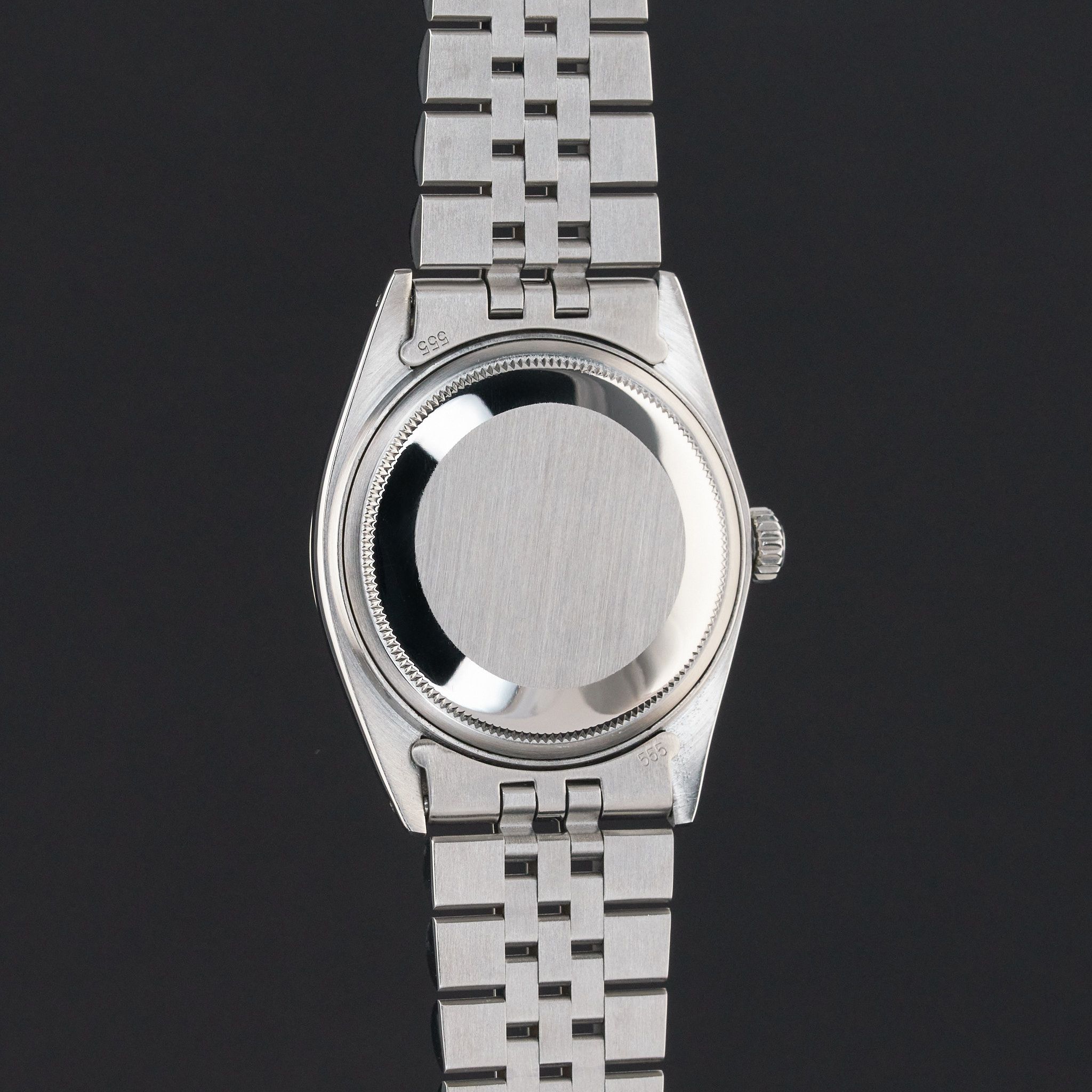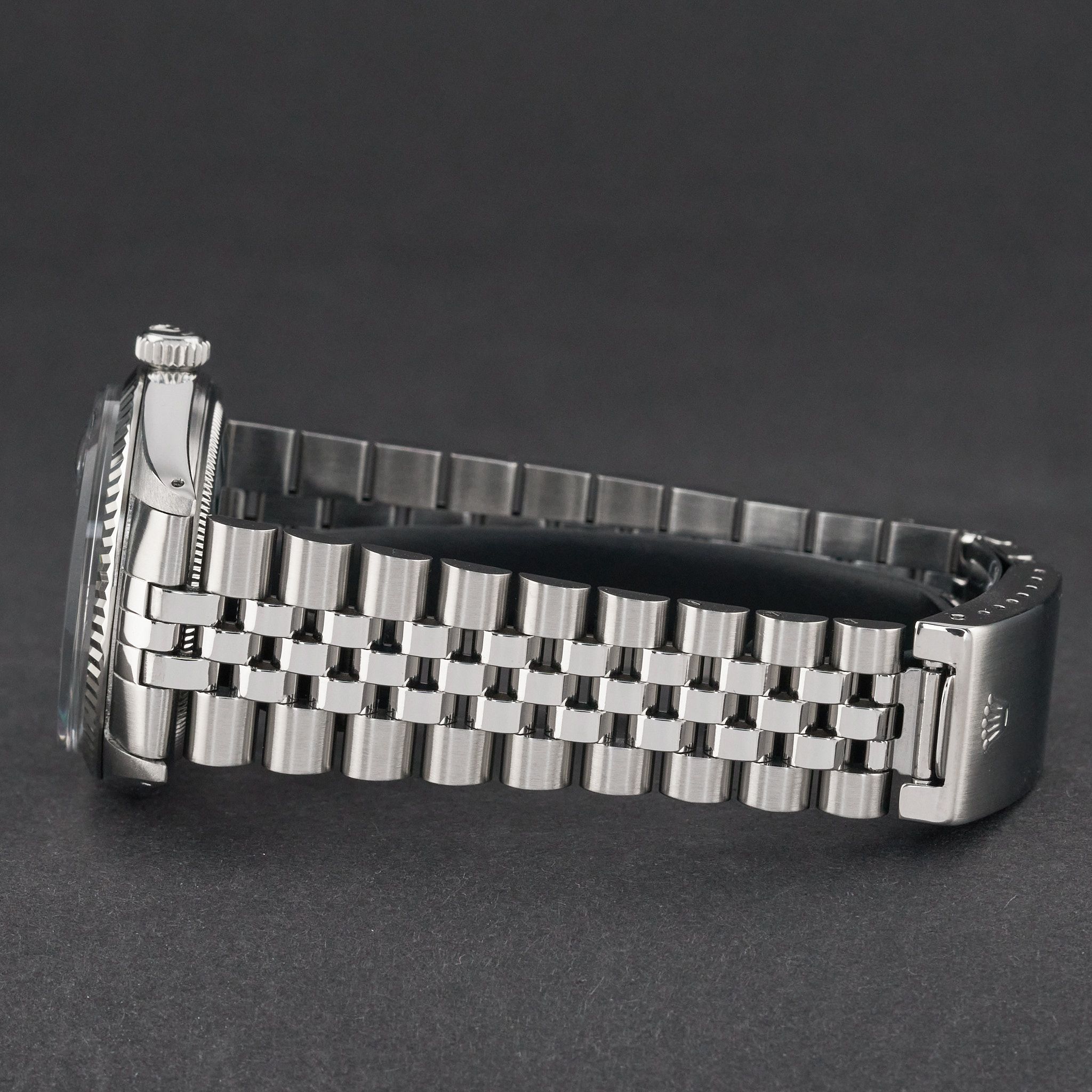 This Rolex Datejust 1601 features a Black dial and is crafted from stainless steel, with a production year of 1974.