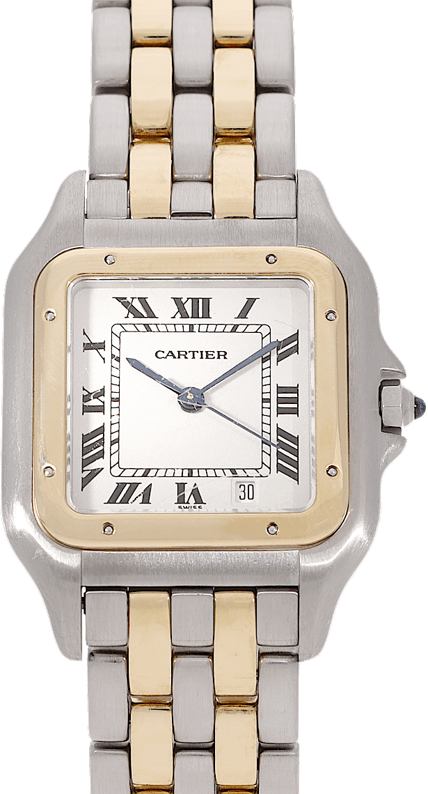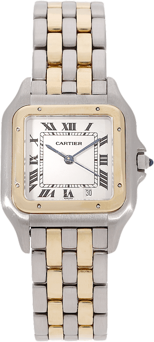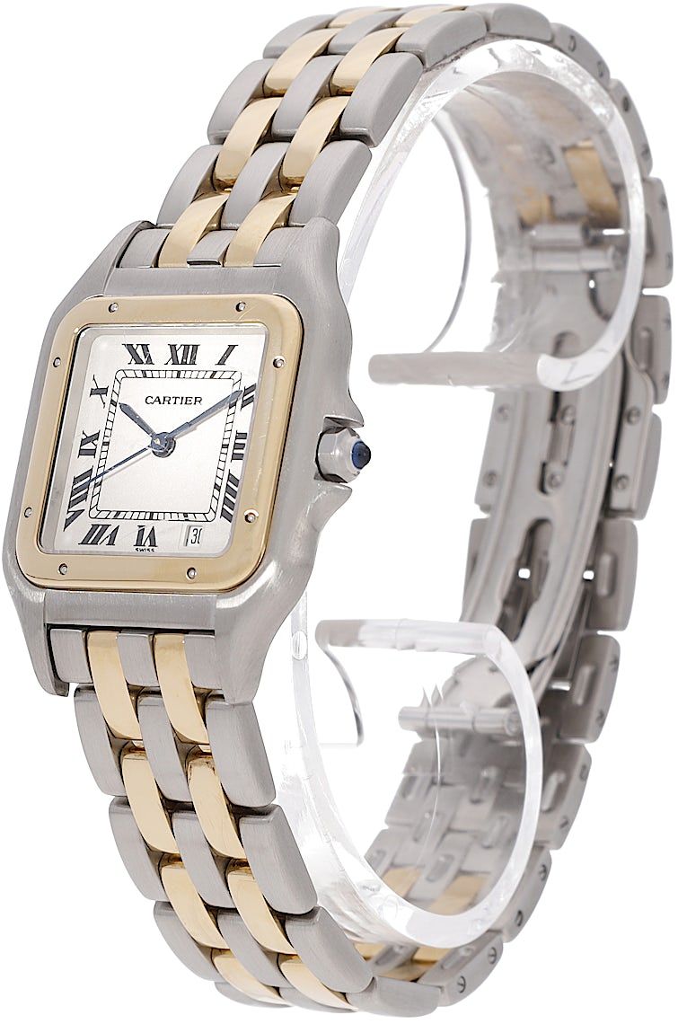 Cartier Panthere, Reference: W25028B6, Gender: Female, Size: 27mm, Dial color: Beige, Strap material: Stainless Steel Yellow Gold, Movement: Quartz, Condition: Previously worn, minor to no signs of usage. The movement is flawless and the case has been cleaned. watch tested ensure full functionality. An inspection by our certified watchmakers guarantees its authenticity., Documents: Original papers, CHRONEXT Certificate