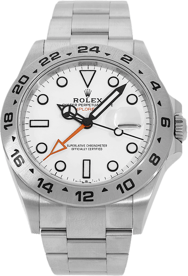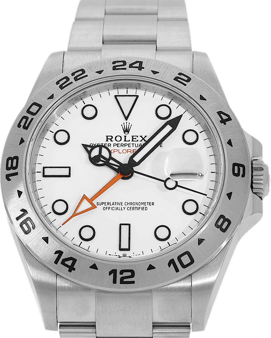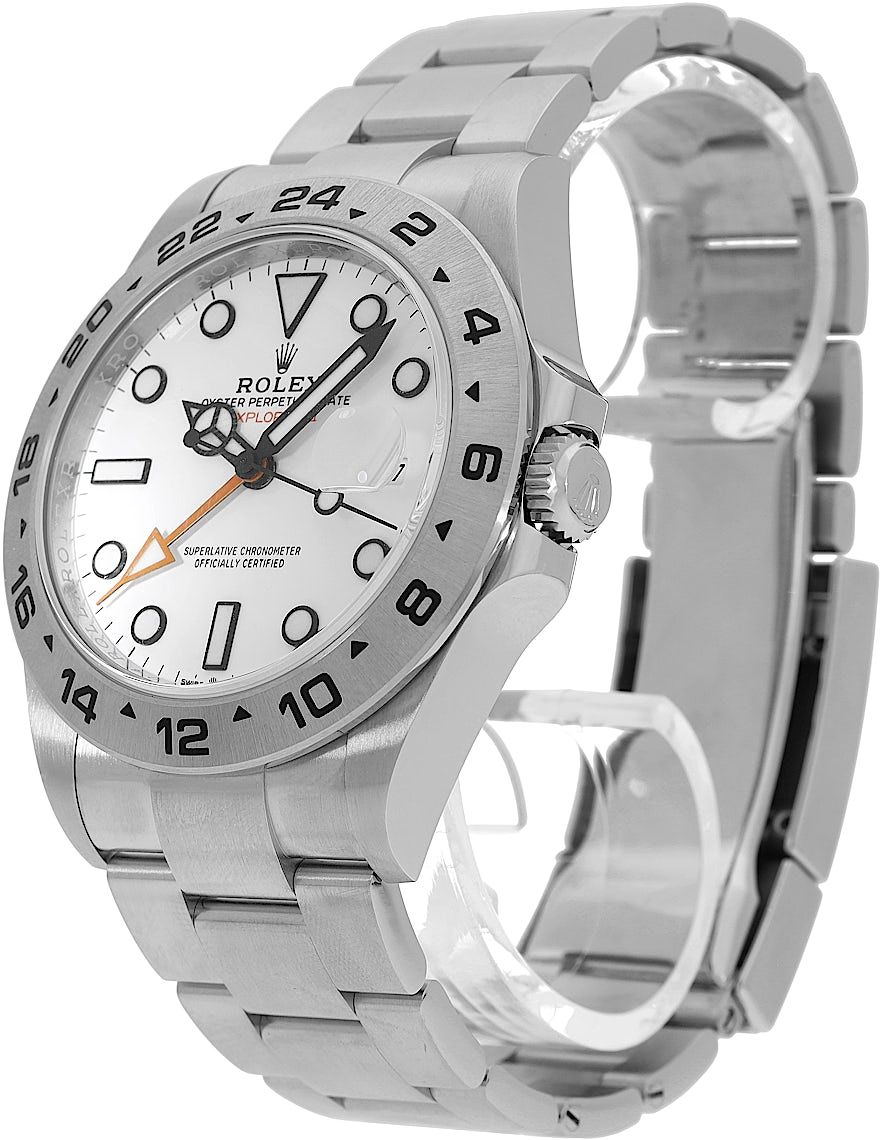 Rolex Explorer II, Reference: 226570, Gender: Male, Size: 42mm, Dial color: White, Strap material: Stainless Steel, Movement: Automatic, Year: 2022, Condition: Previously worn, minor to no signs of usage. The movement is flawless and the case has been cleaned. watch tested ensure full functionality. An inspection by our certified watchmakers guarantees its authenticity., Documents: Original papers, CHRONEXT Certificate