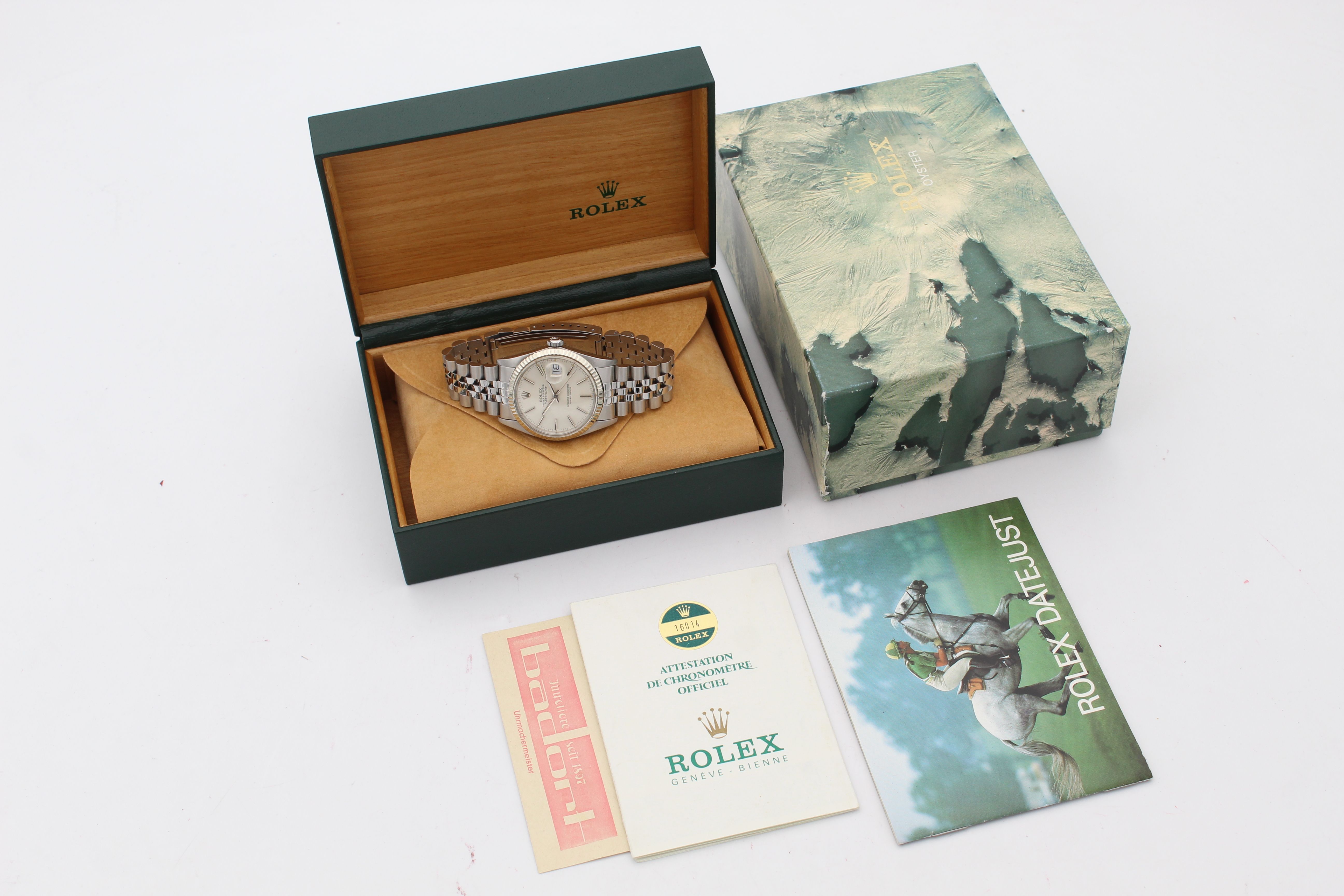 Rolex Datejust 36mm Referenz: 16014 silbernes Blatt mit Box und Papieren in sehr gutem Zustand aus 1982, Erstverkauf in Deutschland LC100