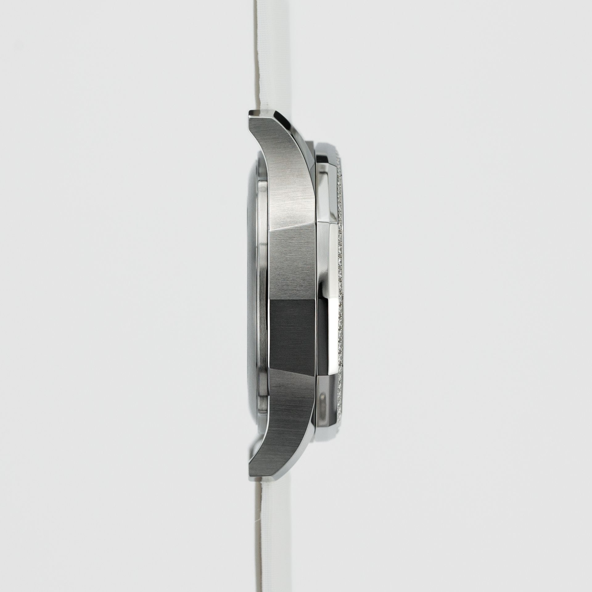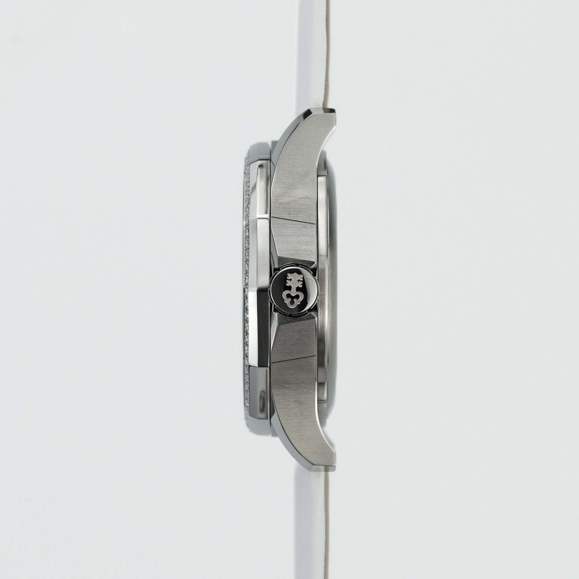From its predecessors, this watch is distinguished by its comfortable, yet noticeable from afar, 12-sided case and the "multilayered" effect of the case – which is now 38 mm without the crown (an excellent proposition for those ladies who, following modern trends, prefer larger cases). The beautifully decorated dial, made of colored mother-of-pearl (so-called "Black Mother of pearl"), displays the time, date, and moon phase, and features an abundant use of high-quality diamonds – a total of 72 with a total weight of 0.58 carats.