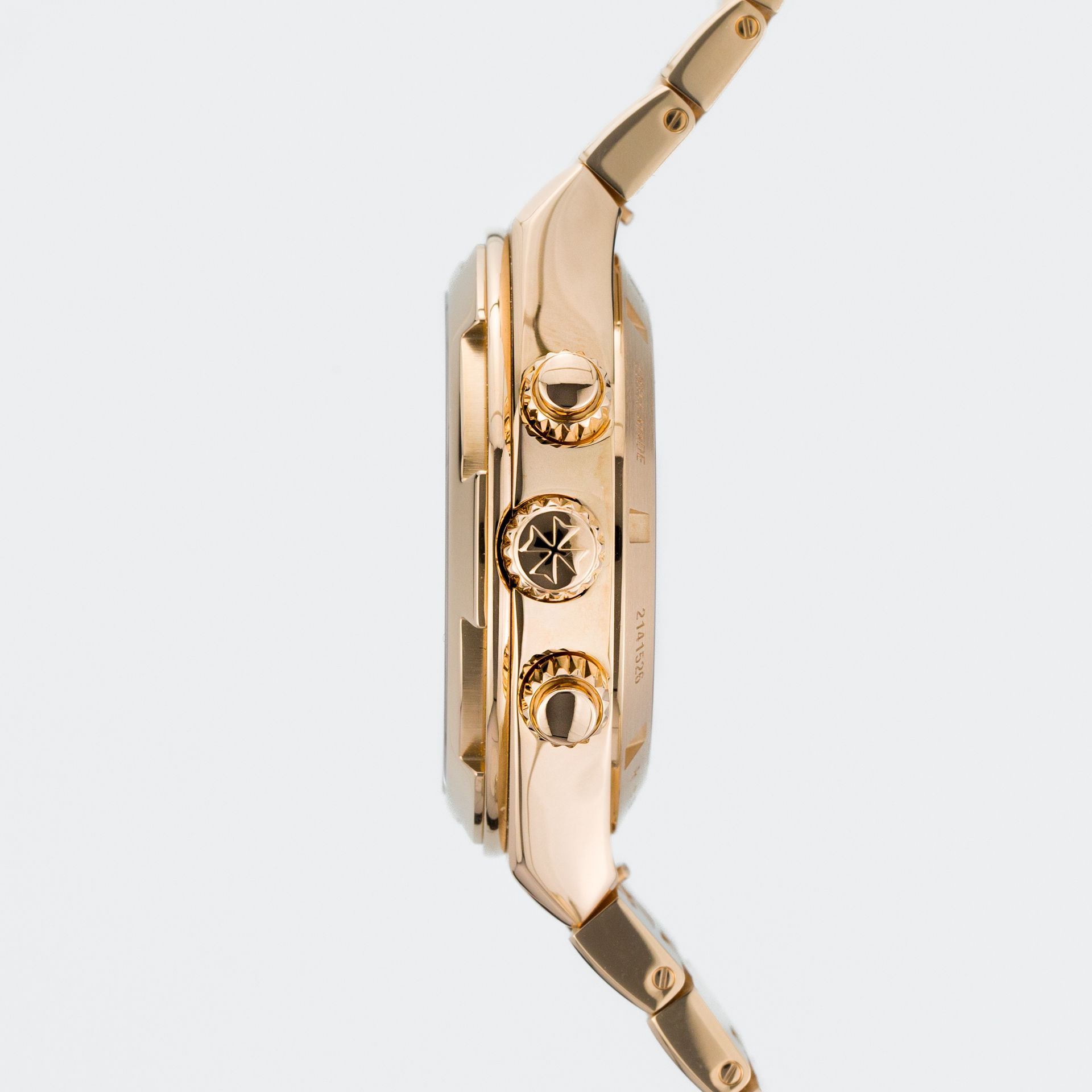 At the heart of the watch beats the automatic in-house masterpiece – Vacheron Constantin caliber 5200 – a latest-generation in-house movement from the brand, a column-wheel chronograph produced with 54 jewels, operating at the familiar frequency of 28,800 vibrations and with a power reserve of over 52 hours. The rotor is crafted from 22k gold – but do not think its purpose is purely artistic! No, the manufacturer was pursuing purely technical objectives, and the gold was used for its specific gravity (and it is for this very reason that it is in the relatively rare density of 22 karats).