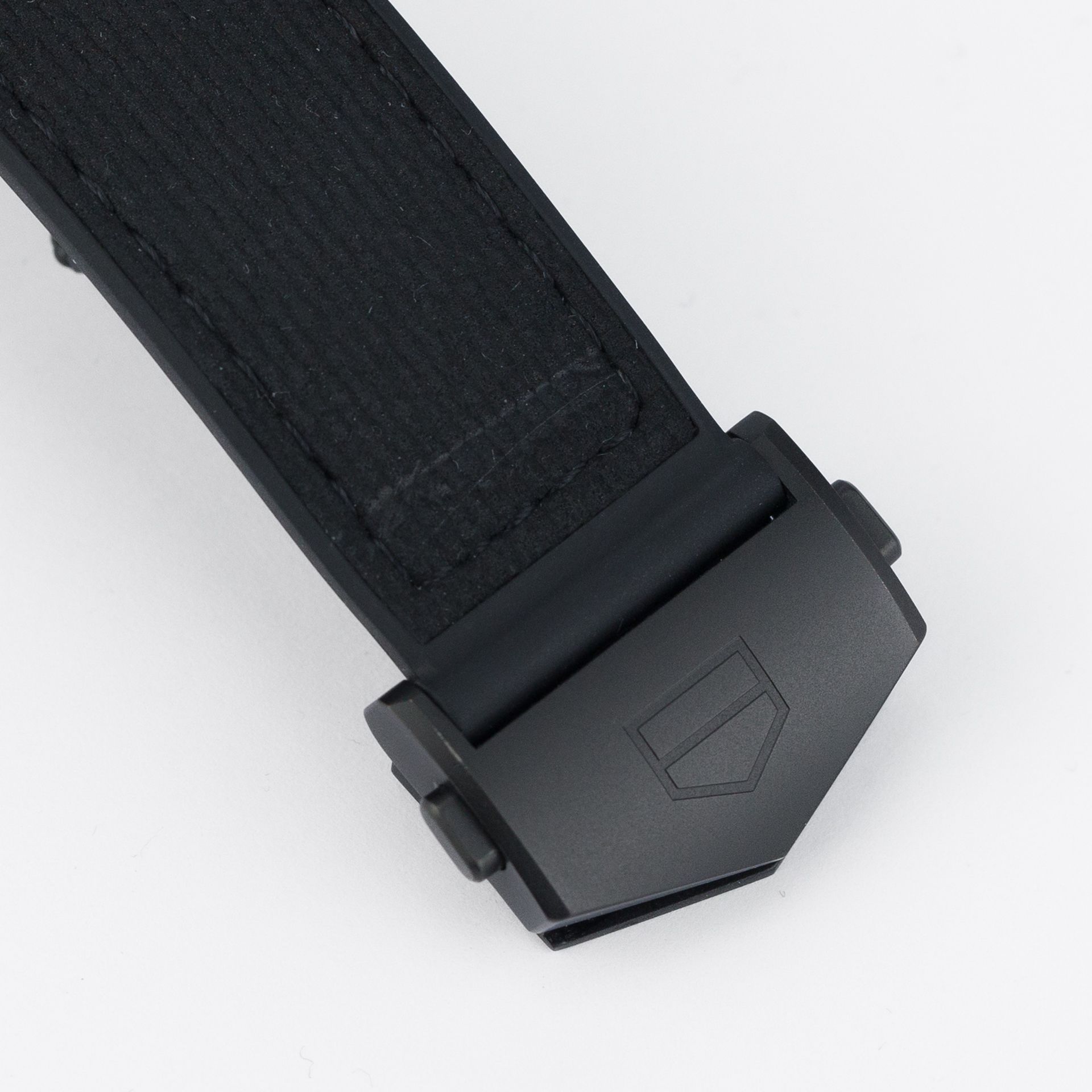 The watch is executed in a very classic combination of black and the recently popular turquoise – the dial is skeletonized, and the hands and hour markers are elegantly garnished with a layer of SuperLuminova – which makes reading the watch's indications easy both during the day and during the dark hours of the day. The date display is in the aperture at 6 o'clock, the chronograph's seconds counter is a red central hand, the minute counter is at 3 o'clock. All this elegance is housed in a rectangular case – a trademark of the Monaco series – and surrounded by a blackened titanium frame – which is not only very stylish and striking, but also very distinctive. The case back is transparent, and this gives us the opportunity to enjoy the work of the watch's mechanical heart – and there, under the code name Tag Heuer Calibre 02, an in-house chronograph works tirelessly, operating at 28,800 vpH, with a power reserve of 80 hours, 33 jewels...