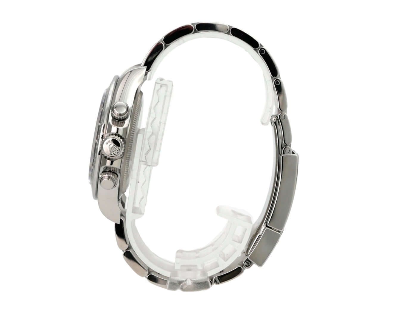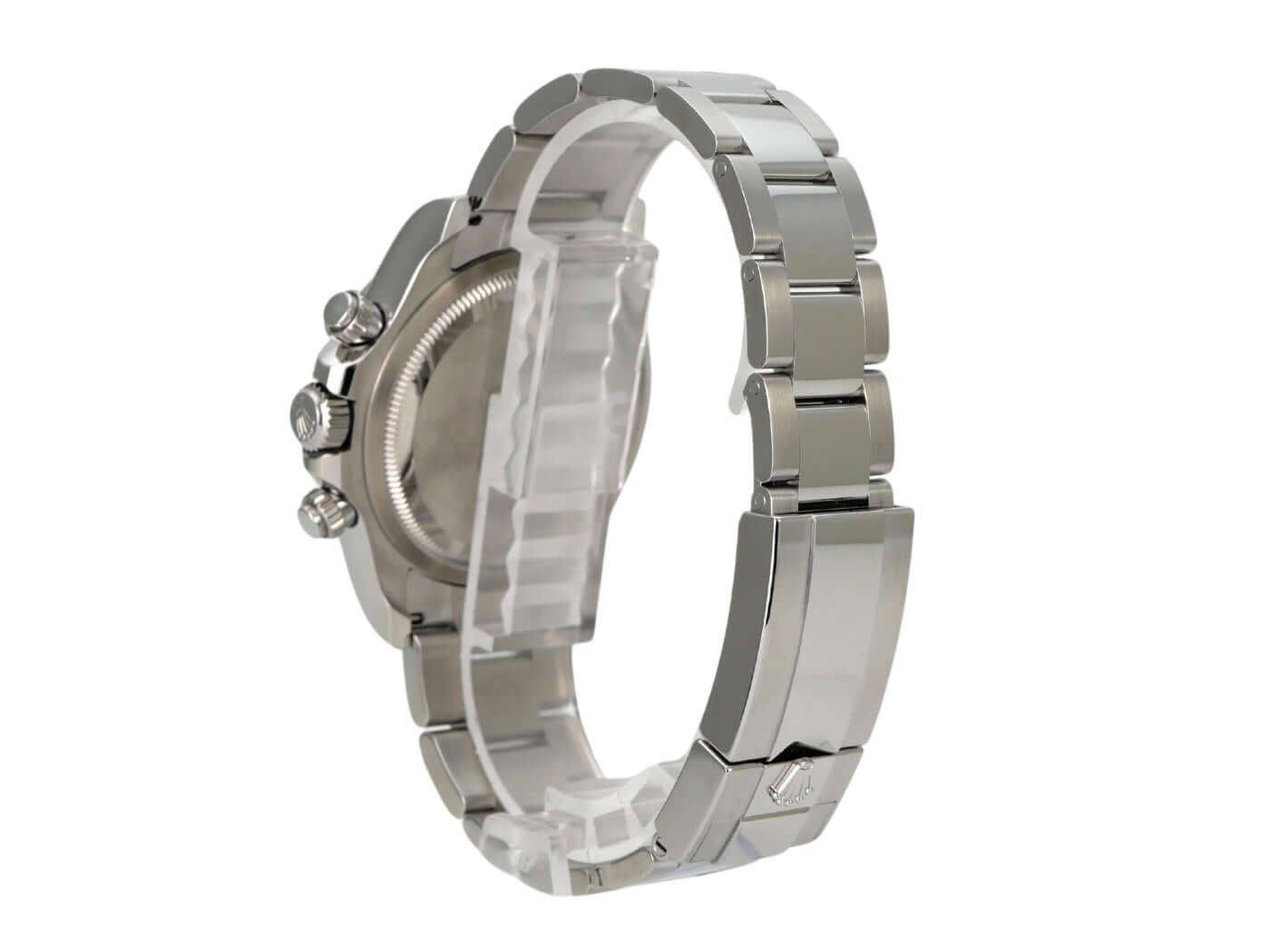 Case made of polished and satin-finished stainless steel, ceramic bezel with tachymeter scale, Oyster stainless steel bracelet, polished and satin-finished with safety folding clasp, white dial, luminous hands, Rolex manufacture caliber 4131, 47 jewels, approximately 72-hour power reserve, chronometer, sapphire crystal, screw-down crown with crown guards and manufacturer logo, screw-down stainless steel case back, water-resistant up to 10 bar.