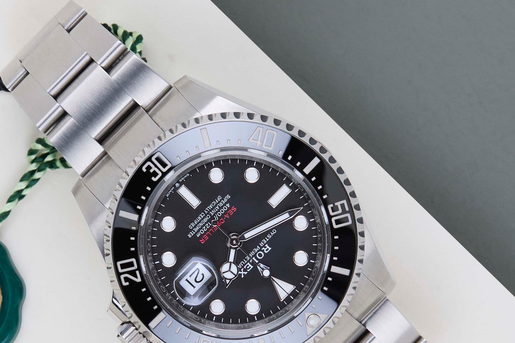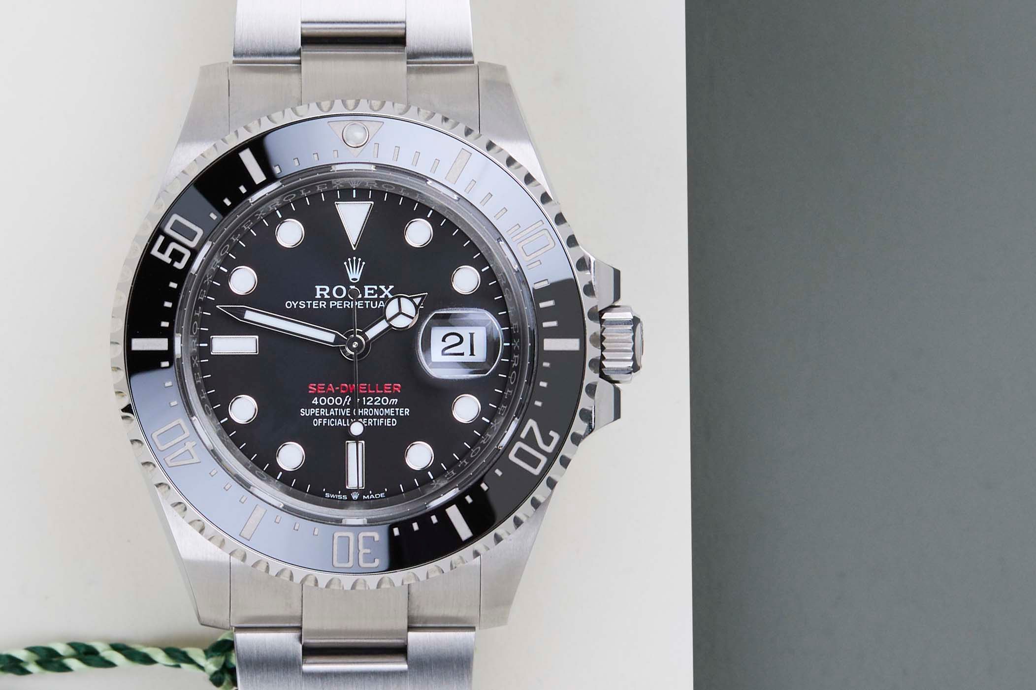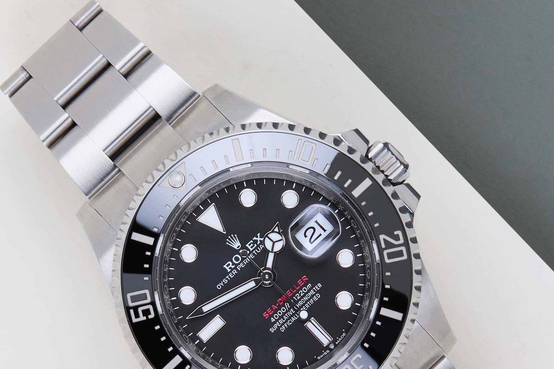New & Unworn | Full Set | International Rolex Warranty Until November 2030The Sea-Dweller was launched in the late 1960s as a professional diver, waterproof to a depth of 610 meters – more than triple what the Submariner guaranteed at the time. The feat was achieved thanks to a bulkier case and the introduction of a helium escape valve that helped regulate the pressure accumulated in the case.For the 50th anniversary, Rolex has introduced this new Sea-Dweller Reference 126600, and this one's a bit different than its predecessors. The new Sea-Dweller comes in a 43mm steel case, making it the largest non-Deep Sea model, going all the way back to 1967.The uni-directional bezel on the new model is black Cerachrom, and the graduation is coated with a thin layer of platinum. The hour markers and hands are filled with blue Chromalight. At the last, the most significant change is the addition of a magnifying glass, aka the Cyclops, above the date.This reference 126600 is equipped with the new-generation Caliber 3235. The new Caliber 3235 has a power reserve of 70 hours and the movement has a -/+ 2 seconds per day accuracy rating.This Rolex Sea Dweller 43 is New & Unworn and comes with the original Rolex Warranty Card and Original Box. Furthermore, the watch still has International Rolex Warranty until November 2030.