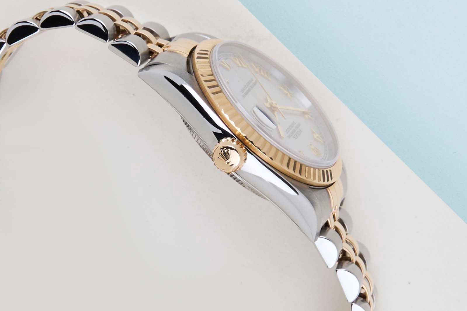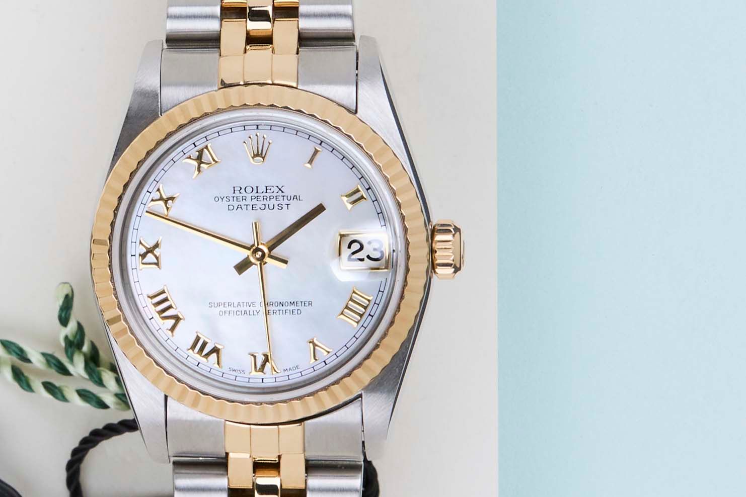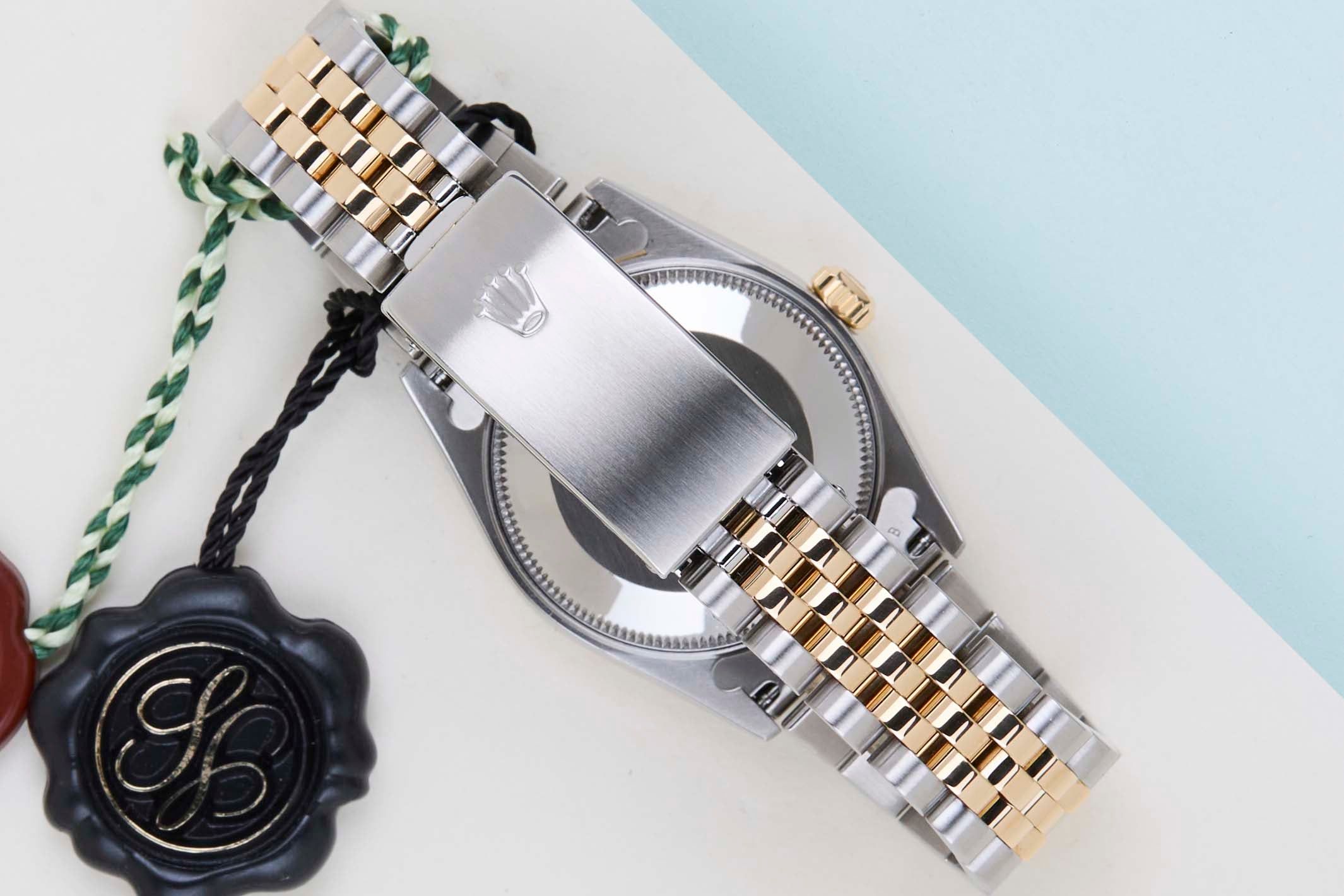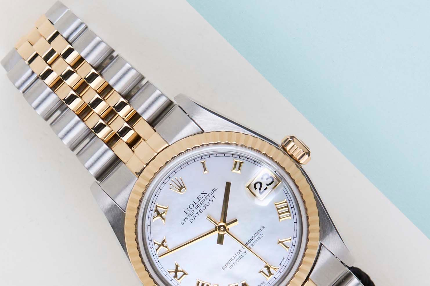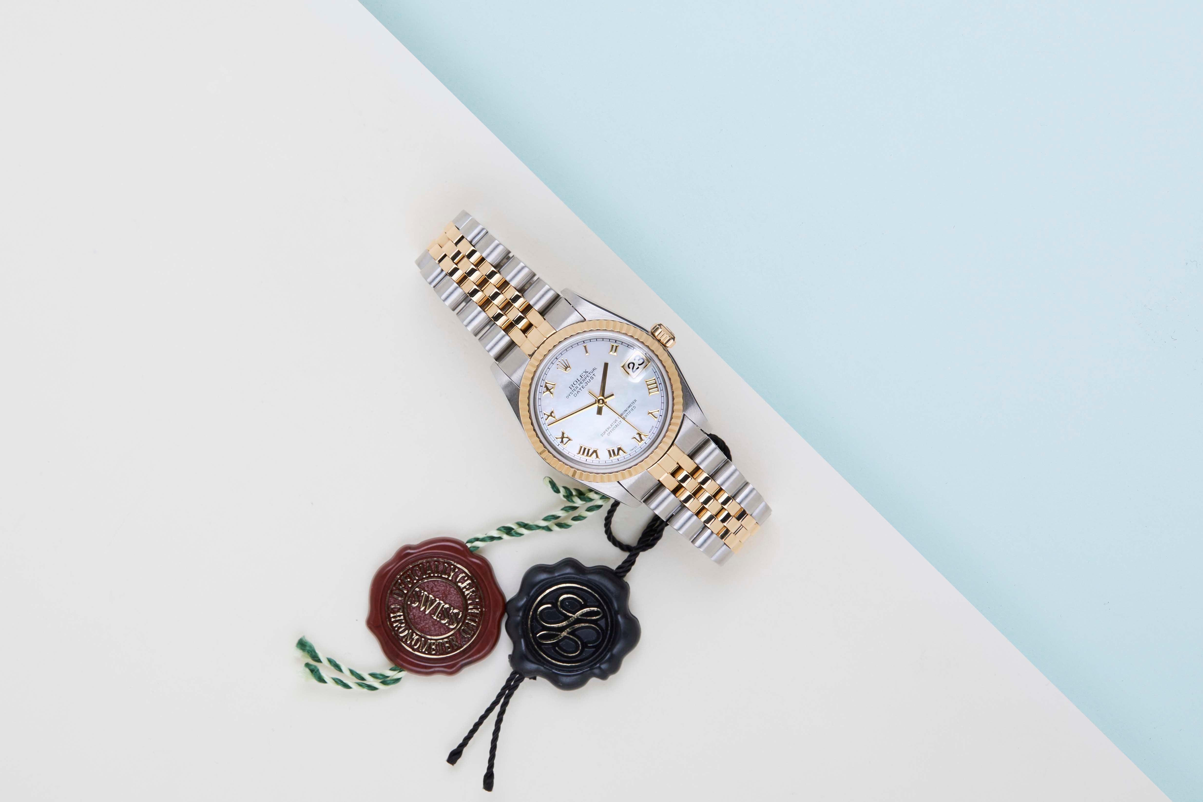 Rolex introduced the original Datejust in 1945 to celebrate the company's 40th anniversary. Due to the various case sizes and materials, the Datejust has been ingrained in Rolex's history and remains incredibly popular for 75 years.This Rolex Datejust 31 'Mother of Pearl Roman Dial - Jubilee' was sold for the first time in July 2006.This Datejust is made of a combination of 18ct Yellow Gold and stainless steel and is fitted with a Jubilee bracelet which is equipped with the Easylink. This extension, allows the wearer to either extend or shorten the bracelet by 5 millimeters, improving the wearability and usability of the watch. Furthermore, this Datejust is fitted with a classic 'Mother of Pearl Roman Dial'.This Rolex Datejust 31 is in mint condition and comes with the original Rolex Warranty Card and Box. Furthermore, the watch has been serviced by our watchmaker, and therefore it comes with One Year of Steiner Warranty.