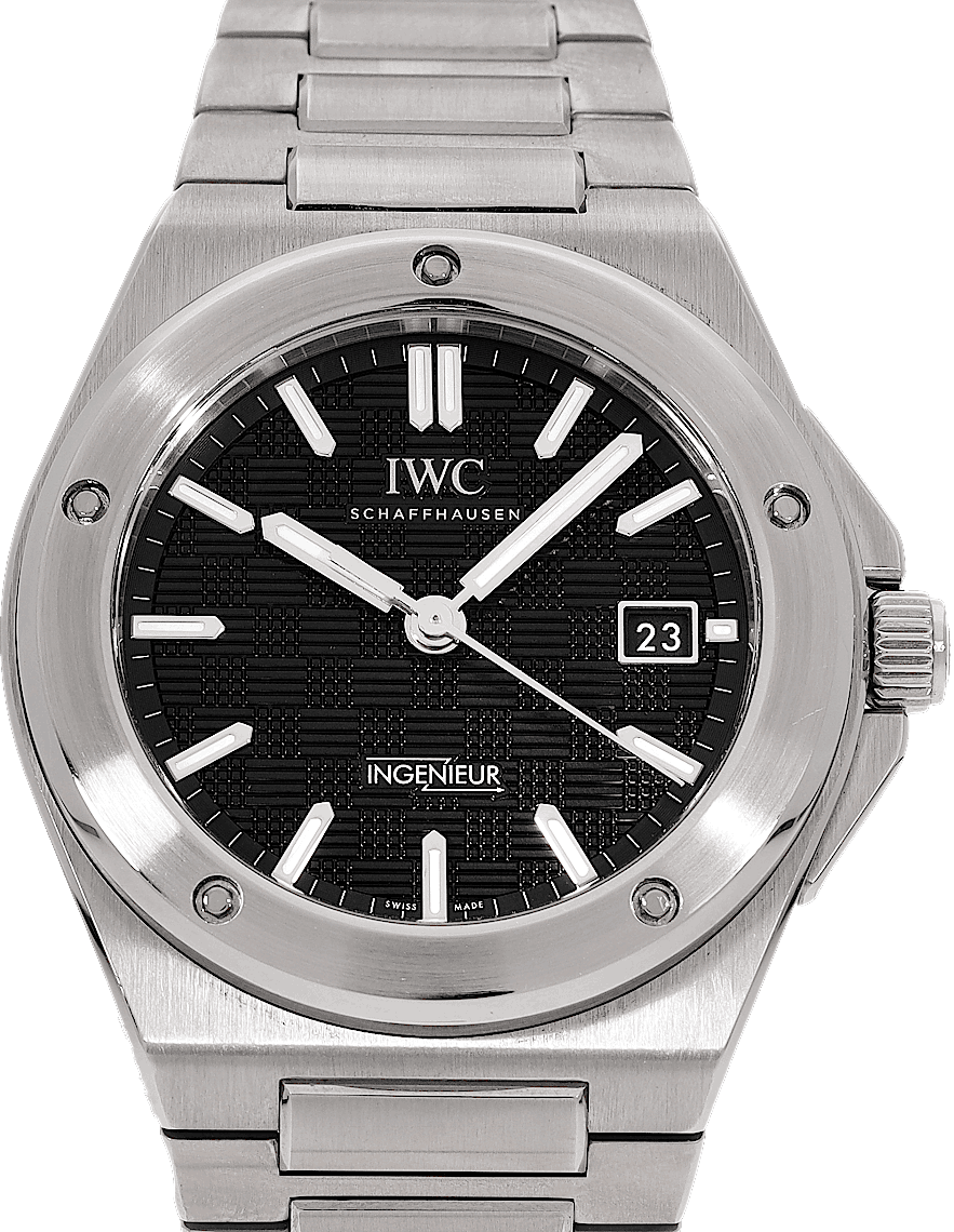 IWC Ingenieur, Reference: IW328901, Gender: Male, Size: 40mm, Dial color: Black, Strap material: Stainless Steel, Movement: Automatic, Condition: Previously worn with some signs of usage. The movement is flawless and the case has been cleaned. watch tested to ensure full functionality. An inspection by our certified watchmakers guarantees its authenticity., Documents: Chronext Certificate