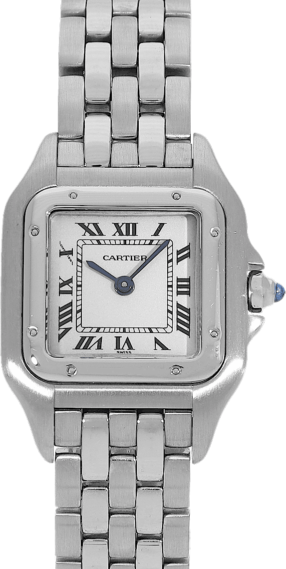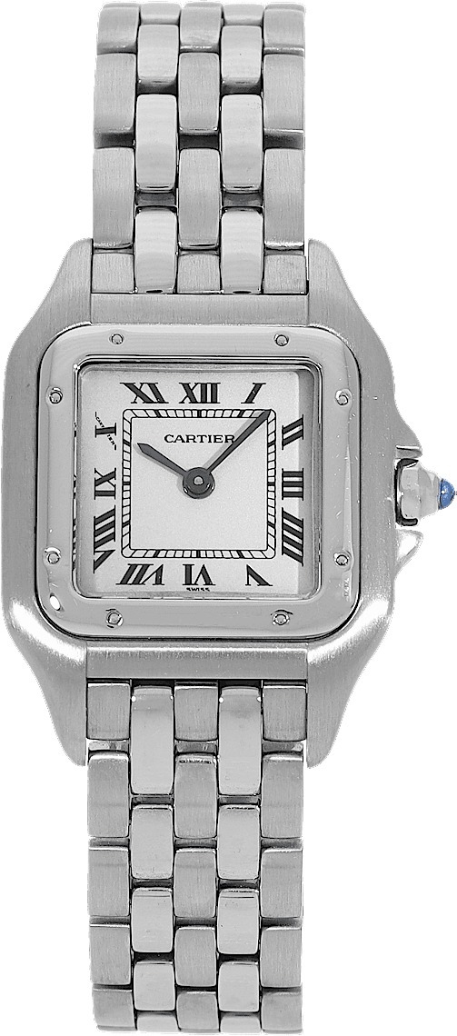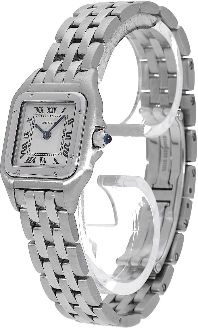 Cartier Panthere, Reference: 1320, Gender: Female, Size: 21mm, Dial color: Silver, Strap material: Stainless Steel, Movement: Quartz, Condition: Previously worn with some signs of usage. The movement is flawless and the case has been cleaned. watch tested to ensure full functionality. An inspection by our certified watchmakers guarantees its authenticity., Documents: Chronext Certificate