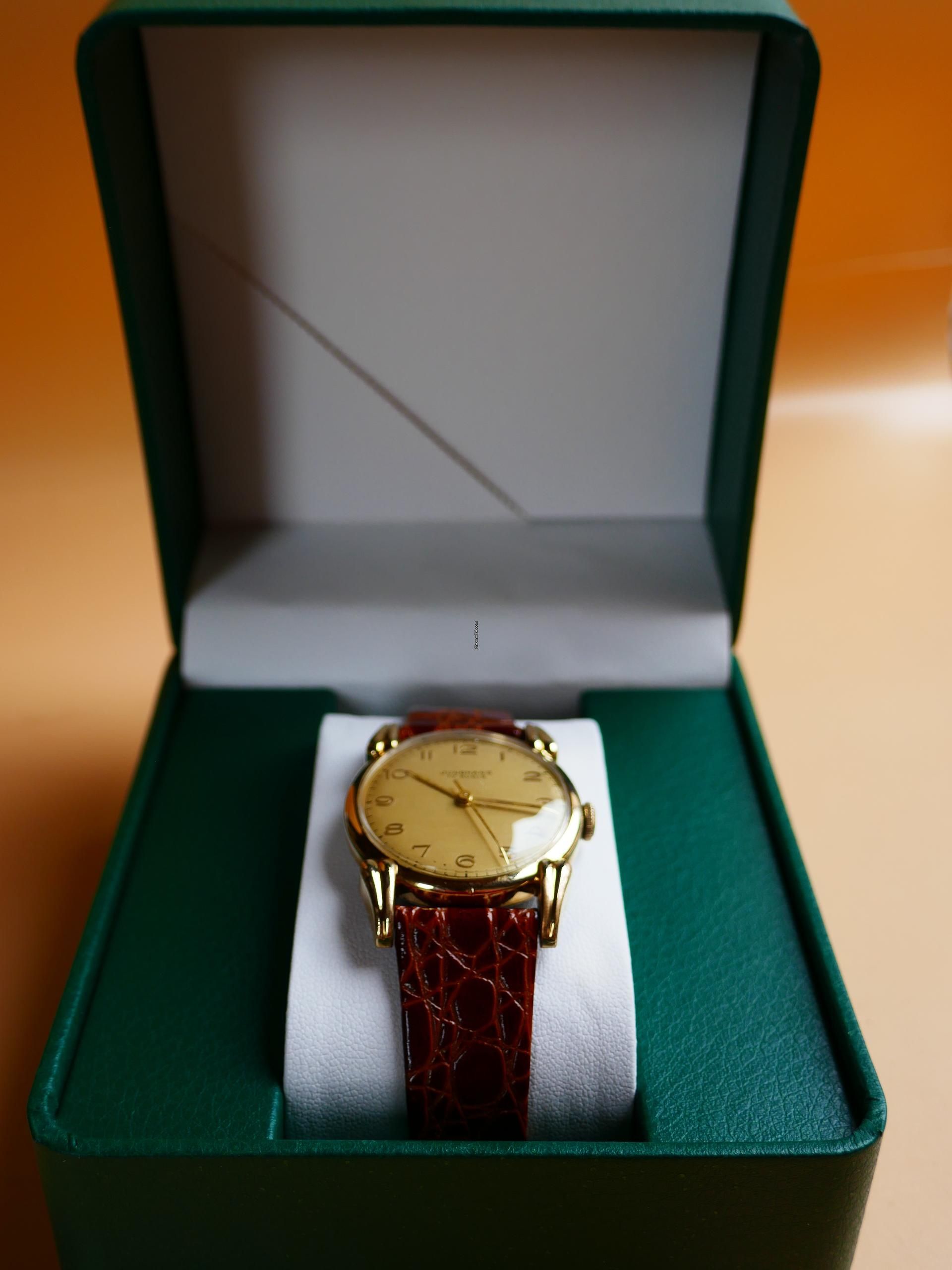 O movimento apresentado foi produzido após 1949/50, pois a partir dessa altura foi instalado o sistema de proteção contra choques. A gravação de dedicação é de 1946 não significa necessariamente que o relógio foi apresentado este ano. O mecanismo niquelado, ou banhado a ródio, possui um belo acabamento damasquinado listrado.