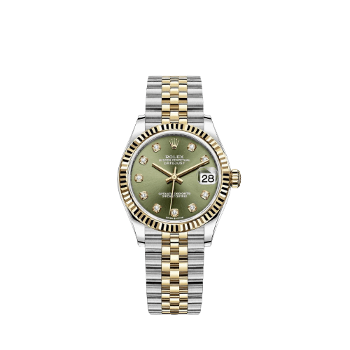 Rolex Datejust 278273 Green Diamond Dial 31mm – Jubilee – NEW 2021. Beautiful green dial in a 31 mm gold/steel case with yellow gold bezel. Our watches are checked by our watchmaker and will be delivered with warranty from our store.
