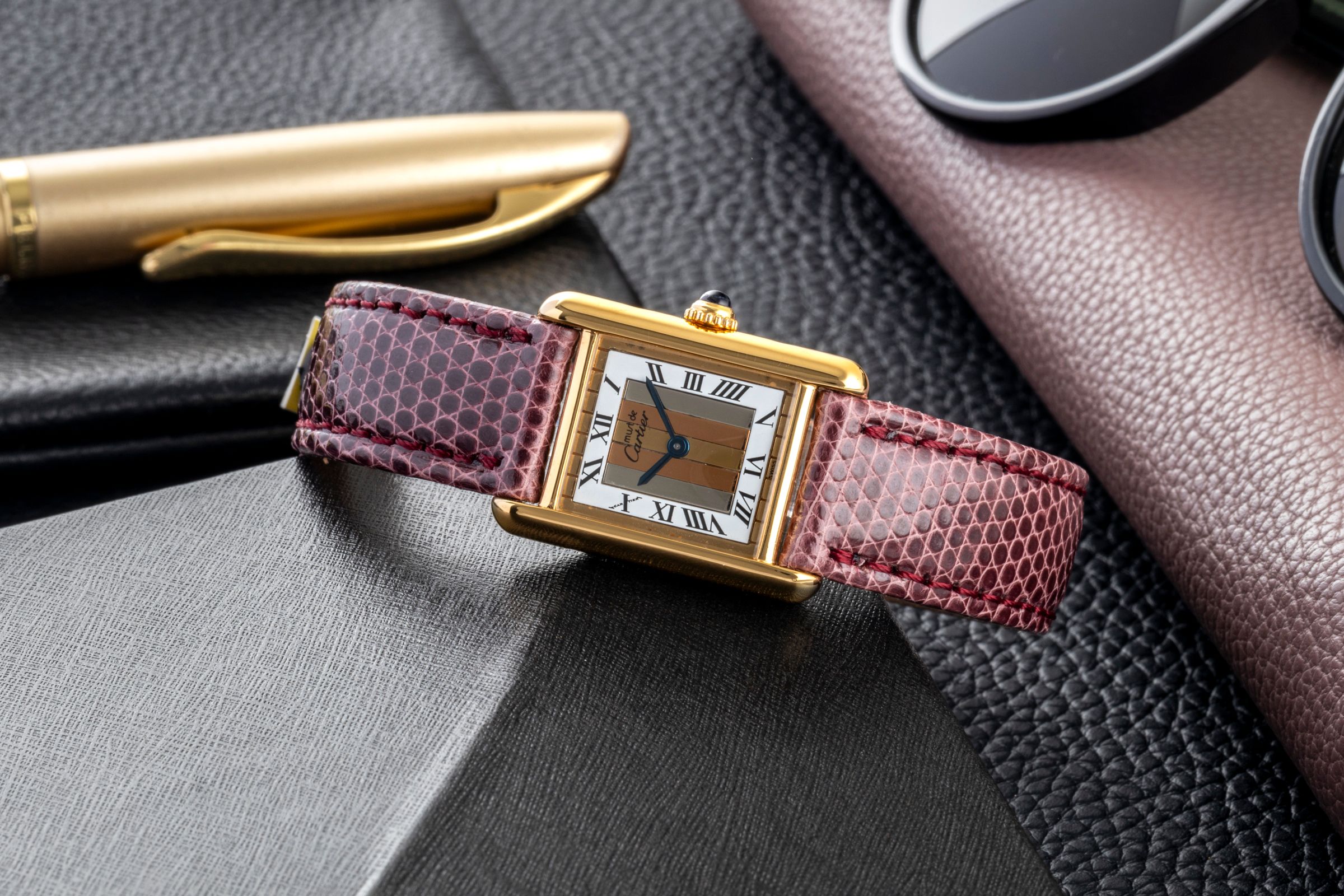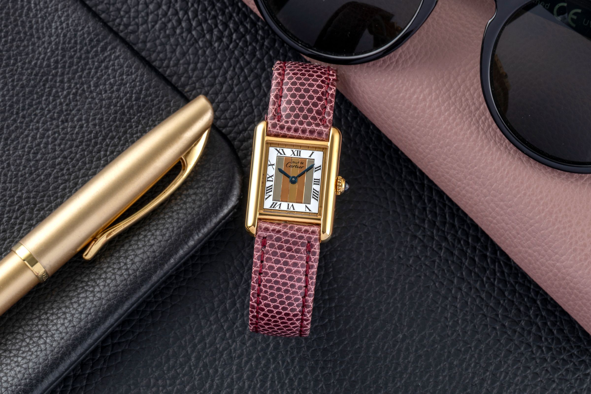 Alternative title: Cartier 5057001 - Tank Vermeil; Cartier must Tank SM Vermeil "Trinity Dial" 925 Silber Damenuhr Ref. 5057001 [2601538]