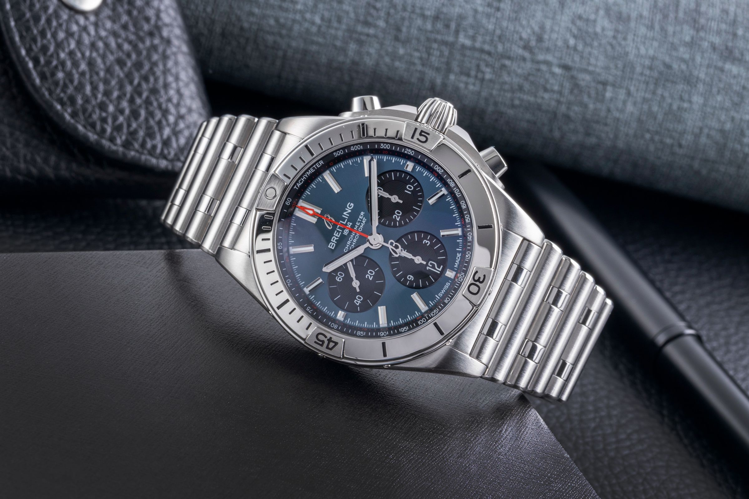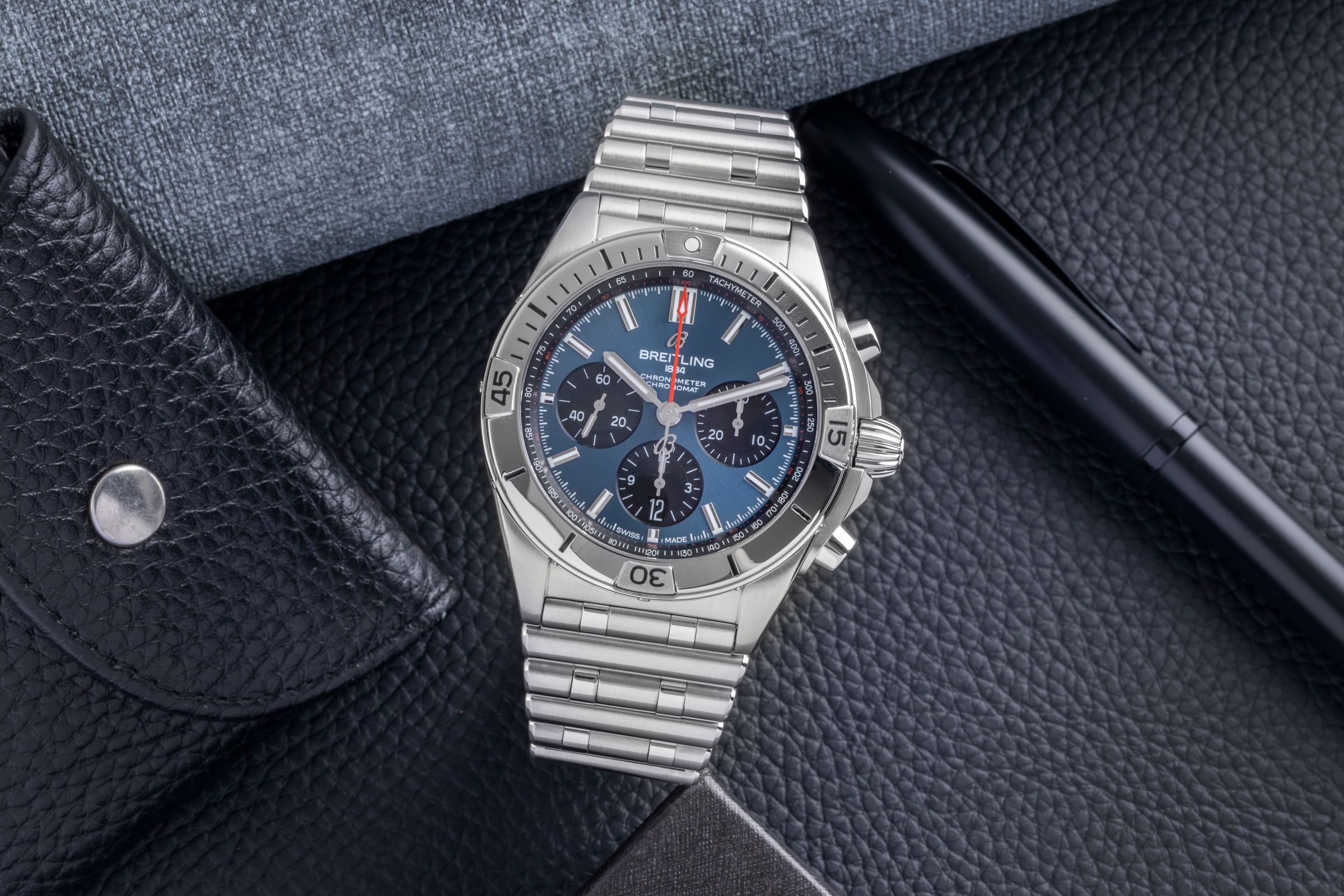 Accessories: Original Breitling box as pictured, Original papers as pictured, Booklets as pictured