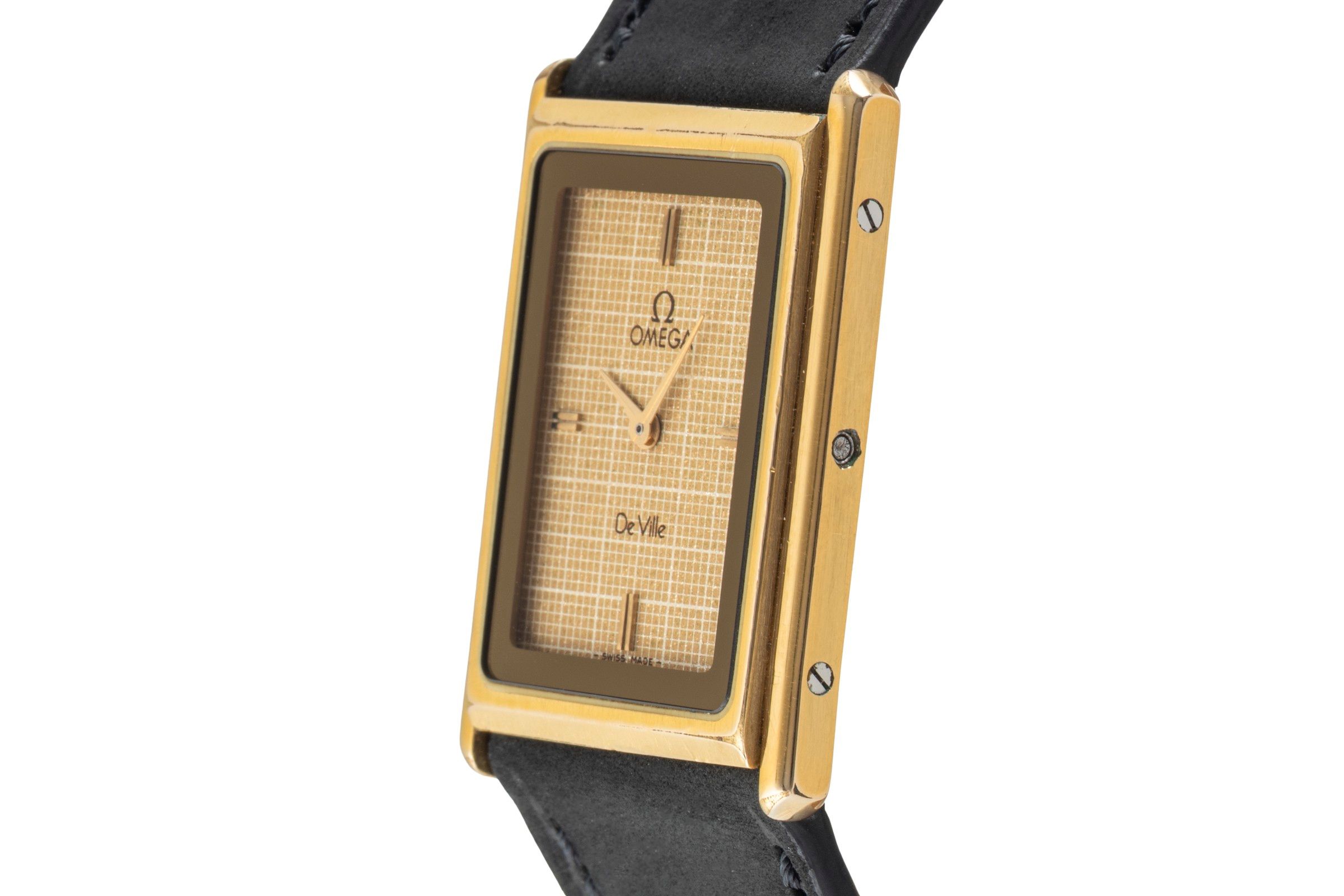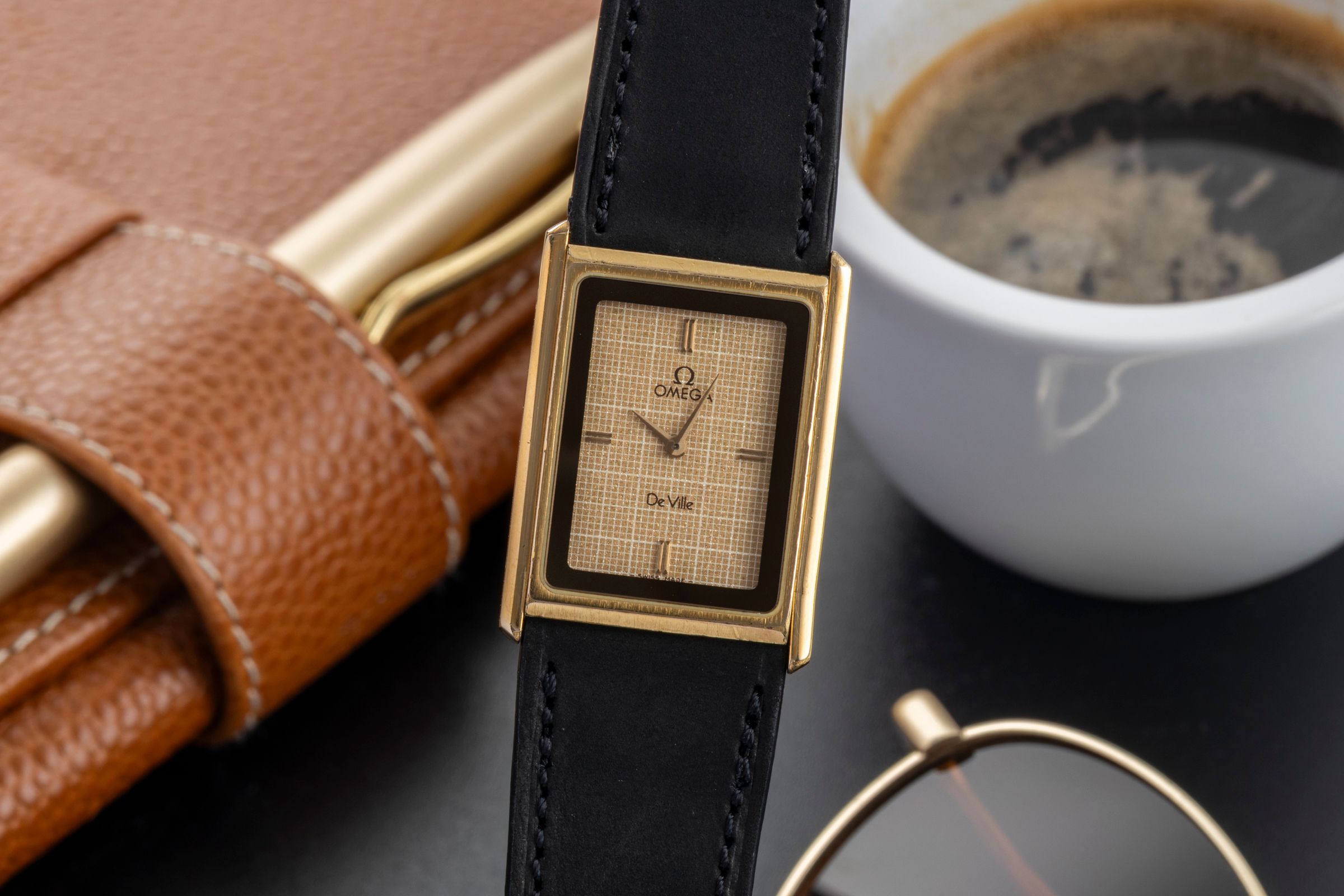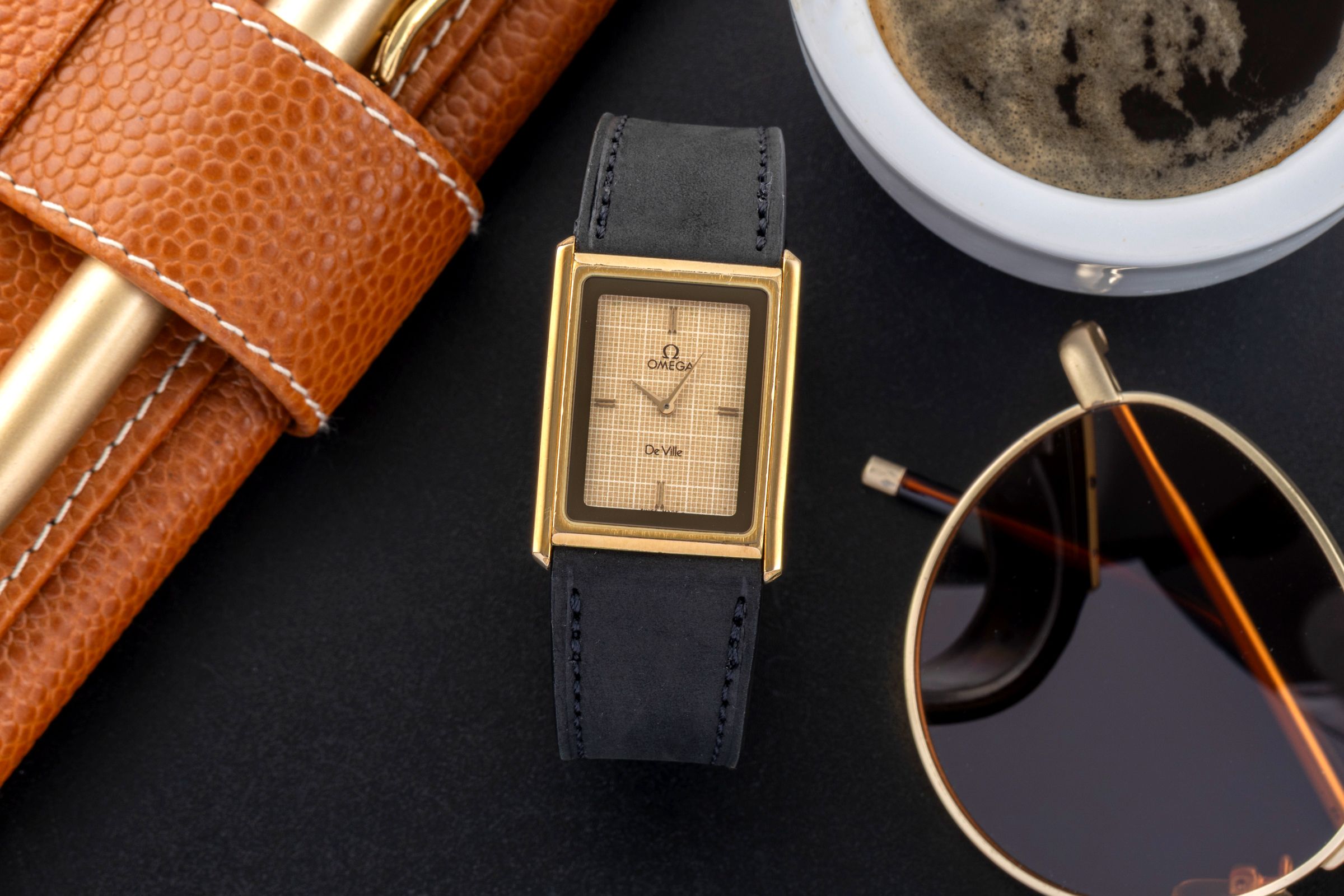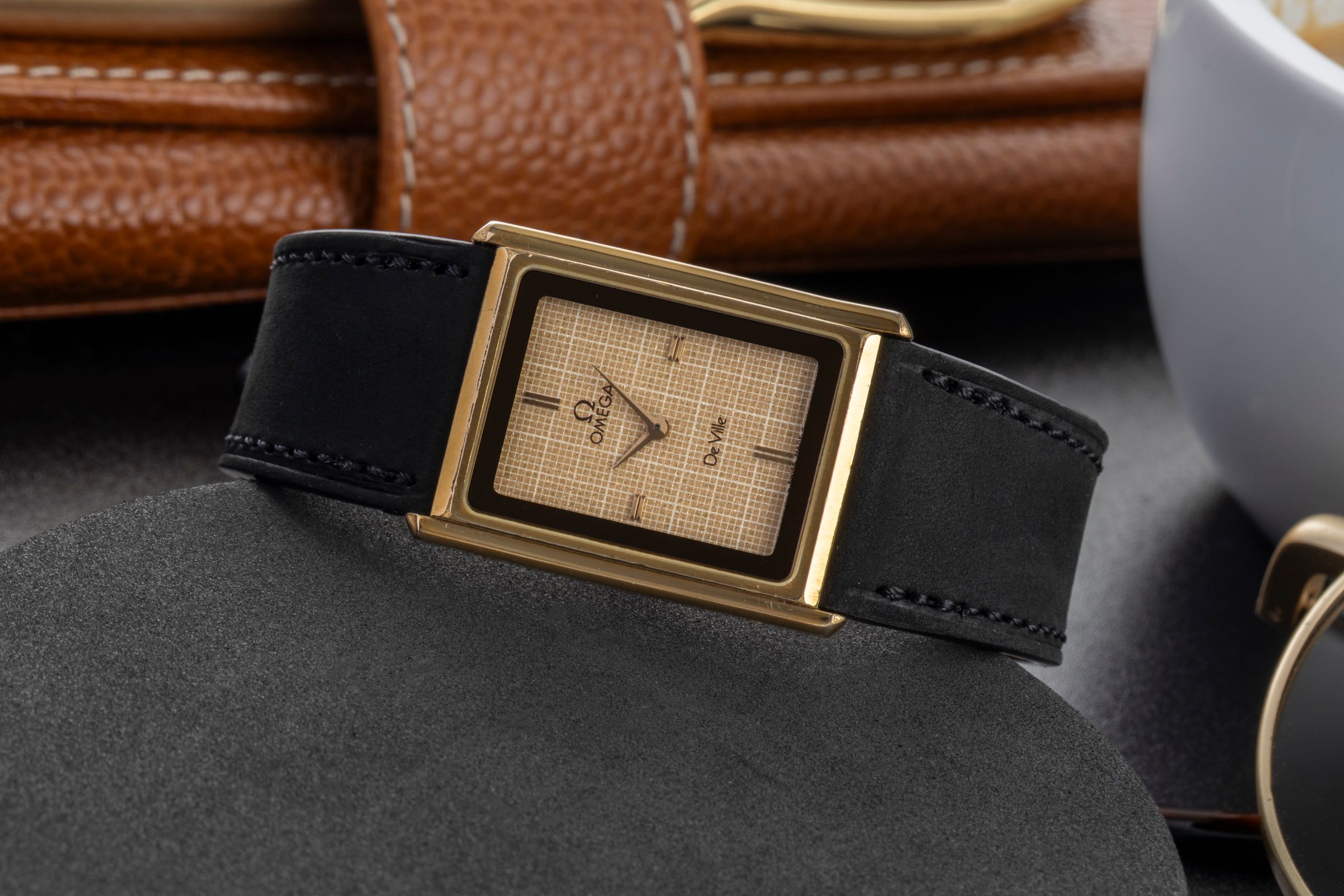 Brand: Omega Model: De Ville Type: men's watch construction: 1982 - 1985 Weight: 22.10 g Movement type: quartz Caliber: 1387 Movement number: 46429xxx Case number: 46429xxx Reference number: 191.0186 Case material: gilt / steel Crystal: sapphire glass Dial color: golden Accessories: New box as pictured Condition - Dial: very good condition - Crystal: very good condition - Case: good condition with traces of use - Case back: very good condition with minimal traces of use - Bracelet: new and unworn - Movement: fully operational / checked for performance, authenticity and functionality Case Dimensions - Width: 23.80 mm - Length: 32.50 mm - Height: 5.30 mm Bracelet - Material: leather - Max. wrist circumference: 180.00 mm - Clasp: made in Germany We guarantee that the pictured item is an original Omega watch. Alternative title: Omega De Ville vergoldet / Stahl Ref.191.0186 vintage Klassiker [2600895]