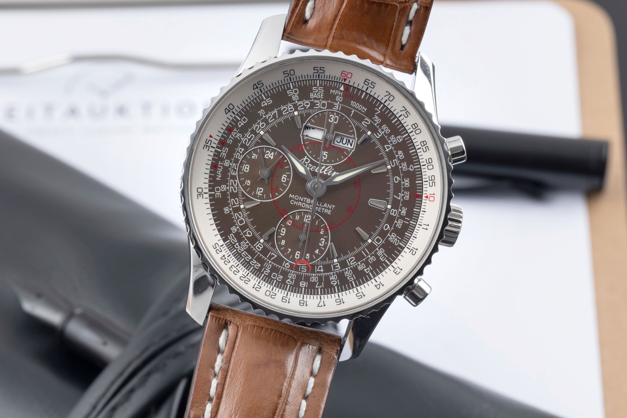 Accessories: Original Breitling box as pictured, Original papers as pictured, Booklets as pictured