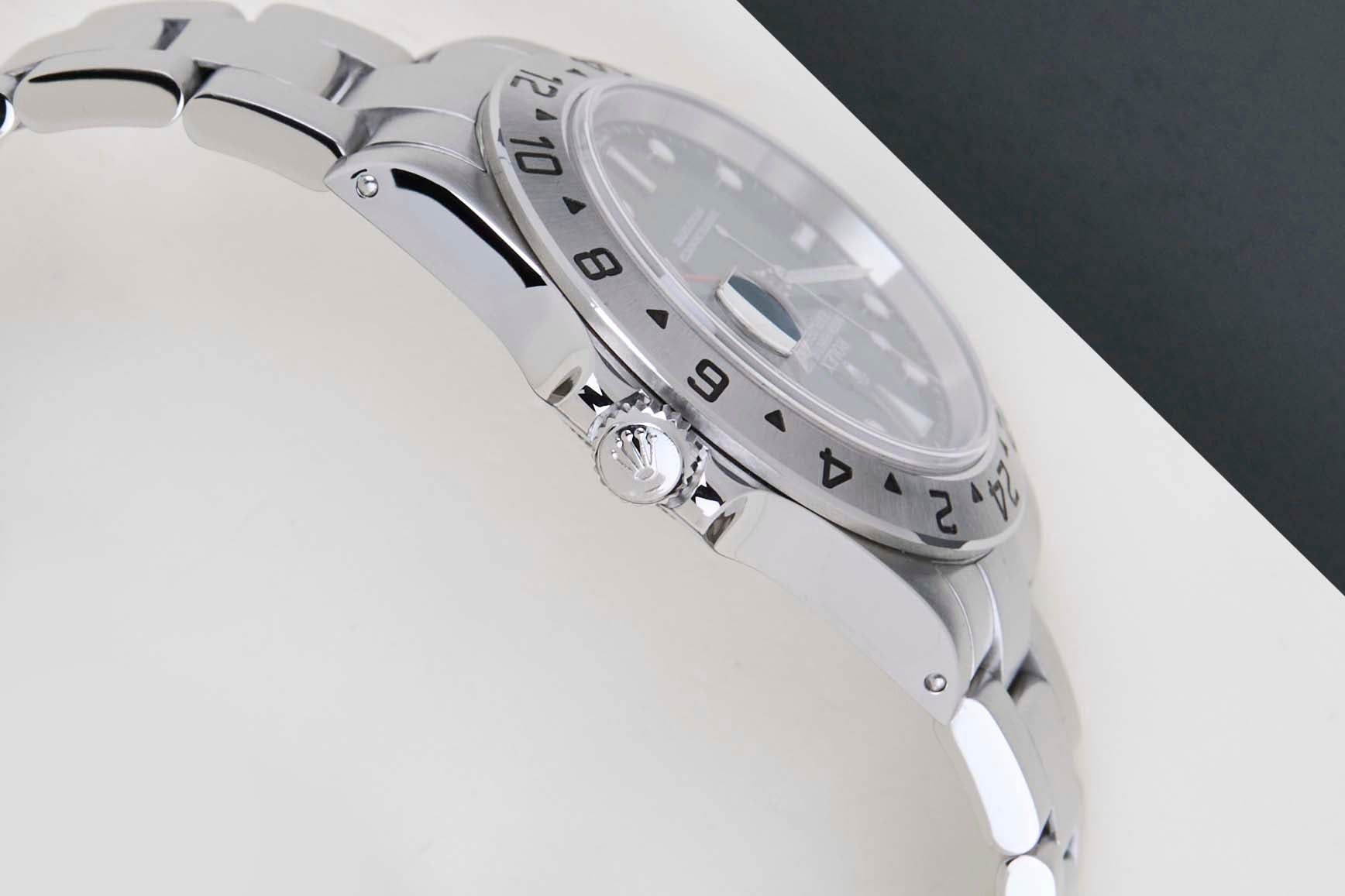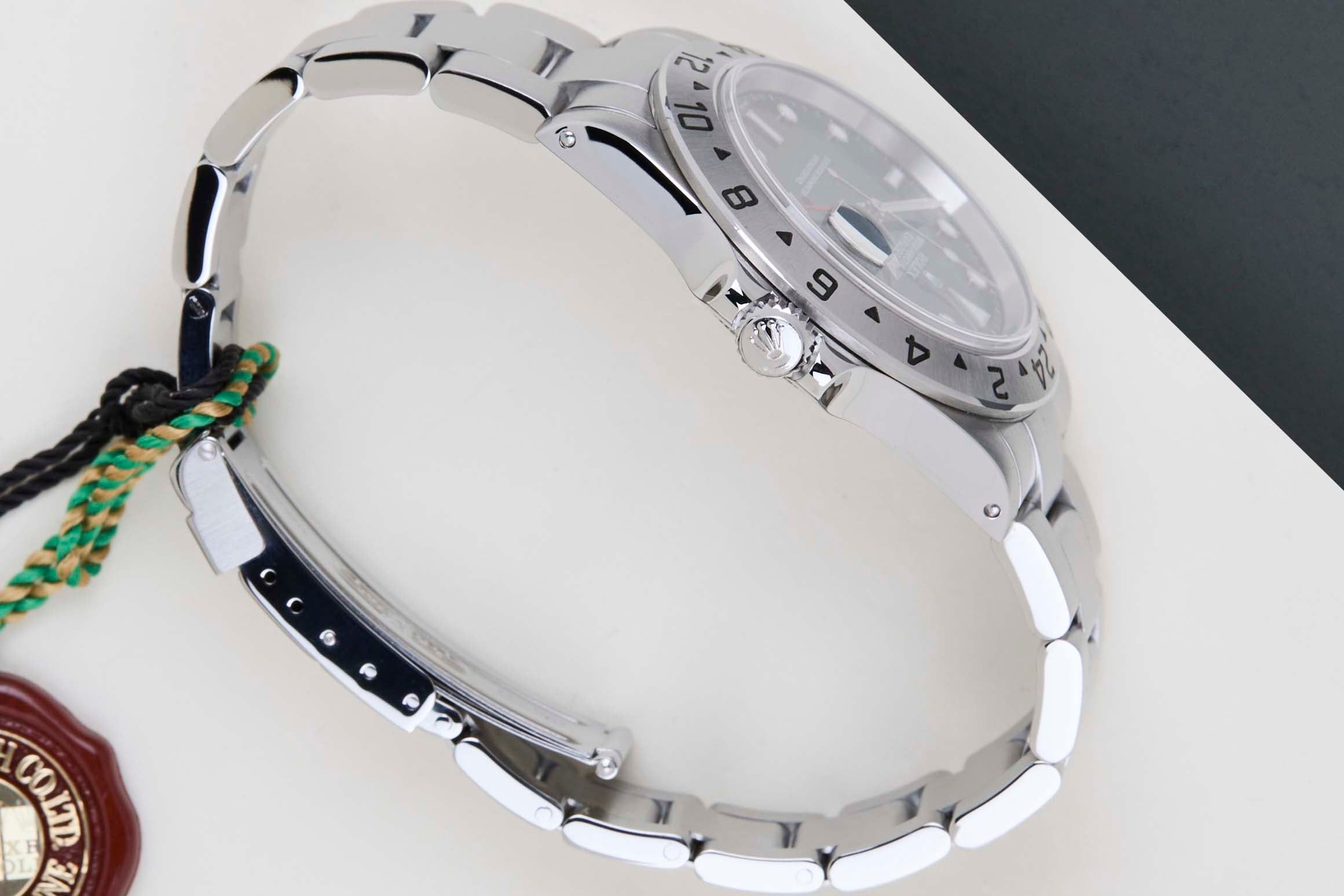 Full Set | European Warranty Card (LC150 - Spain) | Solid Endlinks | Clasp Code DE11 | Bracelet code 78790ARolex released the Explorer II in 1971 and it was designed with polar explorers, mountaineers and adventurers in mind. The Explorer II has a number of functional features that make it very suitable for outdoor use. The most iconic component is the fixed bezel with a 24-hour scale that can withstand harsh conditions.This generation of the Rolex Explorer II was first released in 1989 and discontinued in 2011. This particular Rolex Explorer II 'Black Dial' was sold for the first time in May 2002.This Rolex Explorer 16570 is in Mint condition and comes with the original Rolex warranty papers and original box. Furthermore, the watch has been serviced by our watchmaker and therefore comes with a One Year of Steiner Warranty.
