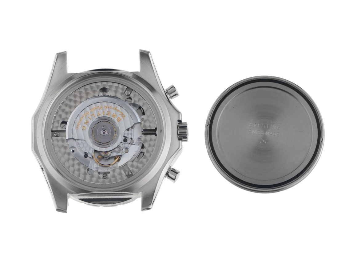 Gehäuse Edelstahl poliert. Gehäusedurchmesser ohne Krone 48,8mm, Gehäusehöhe 17,4mm. Lünette Edelstahl diamantiert und poliert, beidseitig drehbar. Armband Edelszahl poliert und satiniert, Sicherheitsfaltschließe Edelstahl mit Hersteller-Logo. Zifferblatt dunkelblau mit aufgesetzten Edelstahl Indexen und Edelstahl Zeigern. Uhrwerk Automatik, Chronograph, Kaliber Breitling B44. Anzeige von Stunde und Minute über Zeiger aus der Mitte, kleine Sekunde mit Sekundenstopp zur sekundengenauen Einstellung der Uhrzeit bei 3 Uhr, Großdatumsanzeige mit Schnellverstellung bei 12 Uhr. Saphirglas kratzfest. Krone verschraubbar mit Flankenschutz und Hersteller-Logo. Boden im Form eines Aluminiumrades im Miniformat, Edelstahl verschraubt und graviert. Gewicht der Uhr inklusive Armband 234g, Länge des Armbandes inklusive Gehäuse 180mm. Referenznummer: A44362, Gehäusenummer: 2128XXX, ID: P279160000326H-7200, Artikelnummer: 10000085238. Mit Gang Kontrolle und kompletter äußerlicher Aufarbeitung von März 2026. Original Breitling Box mit Umkarton und Garantie Papiere von April 2006, sowie Beschreibung, Lünettenschutz, Rechenschieber und Watchregister Auszug von März 2026, The Watch Register Zertifikat / ohne Eintrag (Internationale Datenbank für verlorene oder gestohlene Uhren), Full Set. Superschnäppchen, Kapitalanlage mit Wertsteigerungspotential, extrem seltenes Sammlerstück, aus erster Hand, fast nicht getragen. Wie Neu. Lieferzeit sofort.