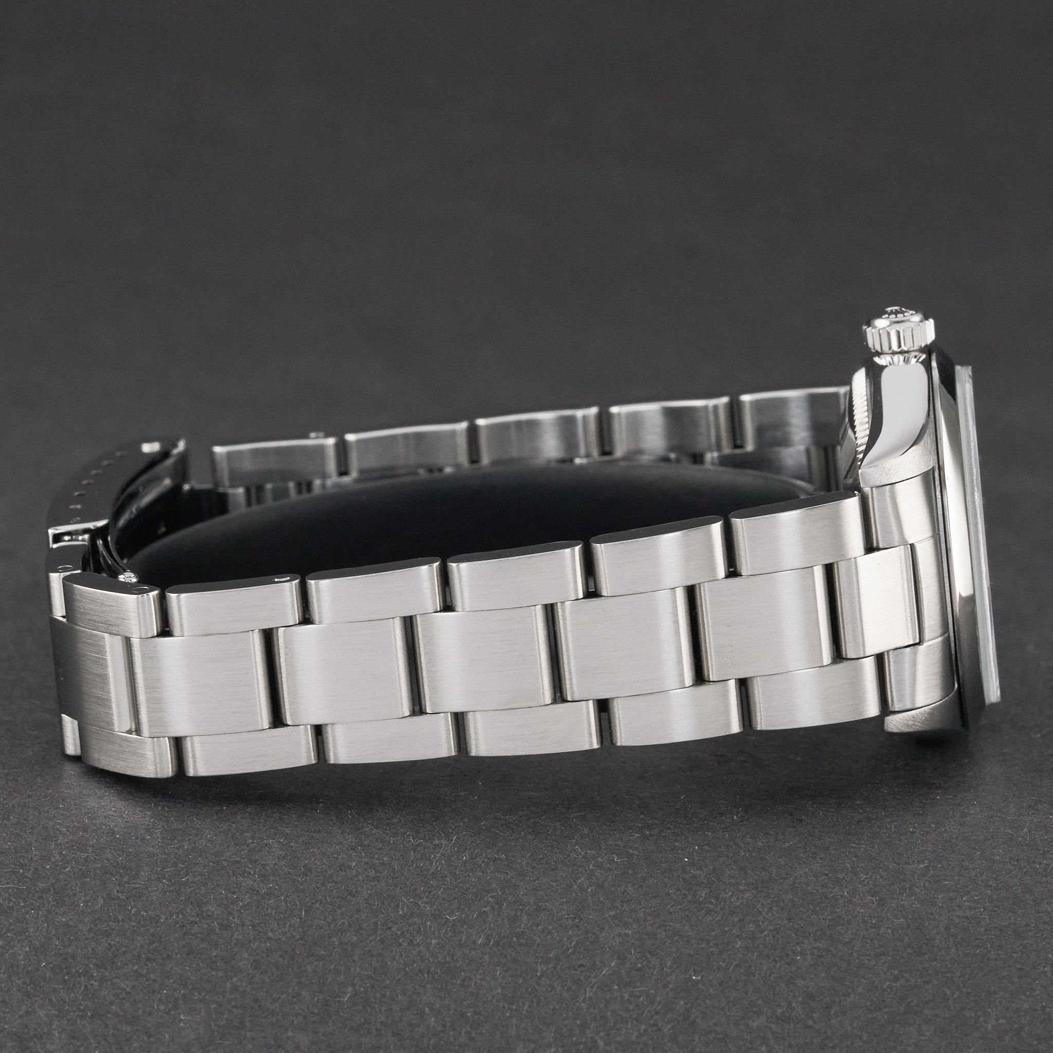 - Minor signs of wear such as hairline marks or small surface scratches. Case, bezel, and bracelet retain sharp edges and overall form. May have been professionally polished without affecting the original contours. Fully functional mechanically.