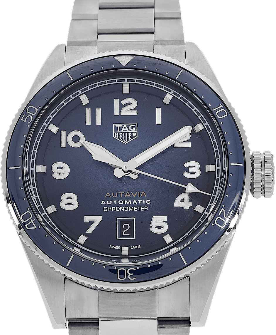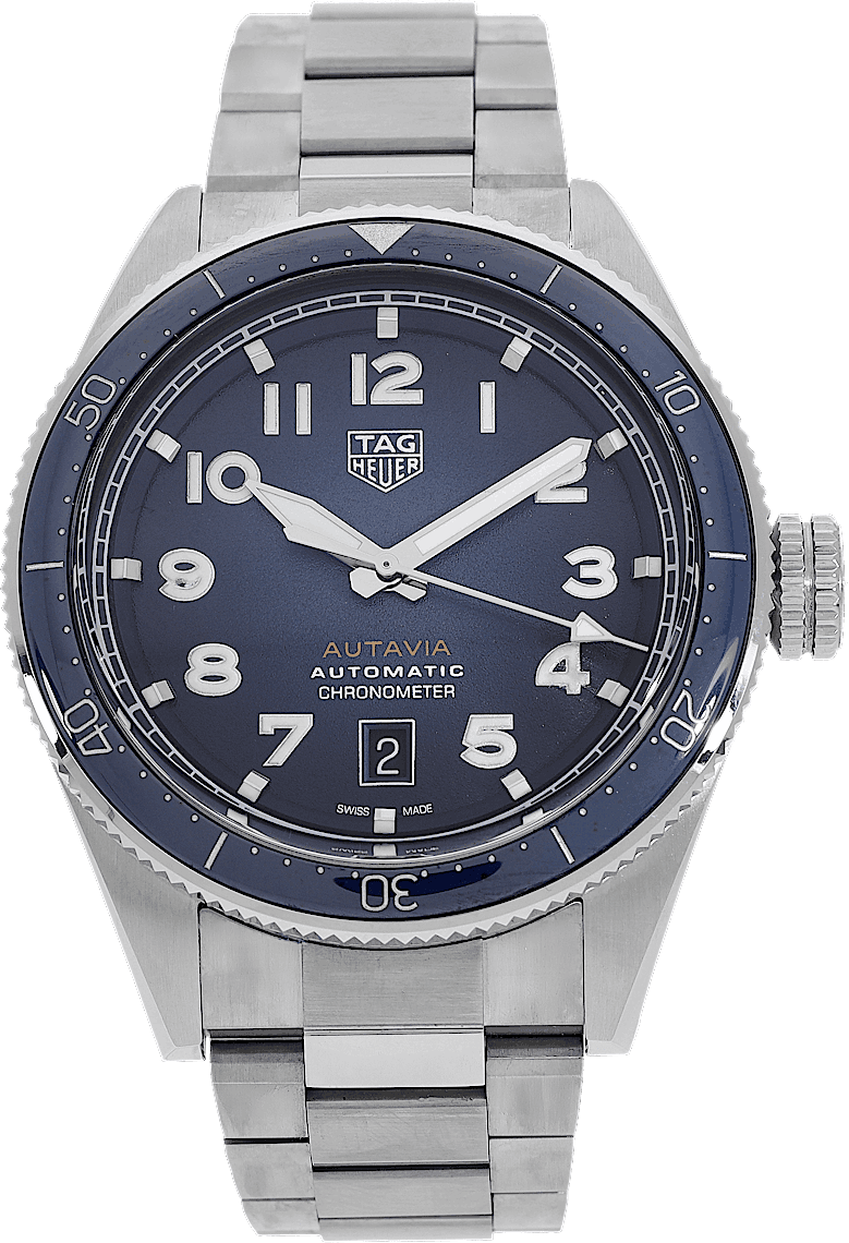 TAG Heuer Autavia, Reference: WBE5116.EB0173, Gender: Male, Size: 43mm, Dial color: Blue, Strap material: Stainless Steel, Movement: Automatic, Year: 2023, Condition: Previously worn with some signs of usage. The movement is flawless and the case has been cleaned. watch tested to ensure full functionality. An inspection by our certified watchmakers guarantees its authenticity., Documents: Original papers, CHRONEXT Certificate