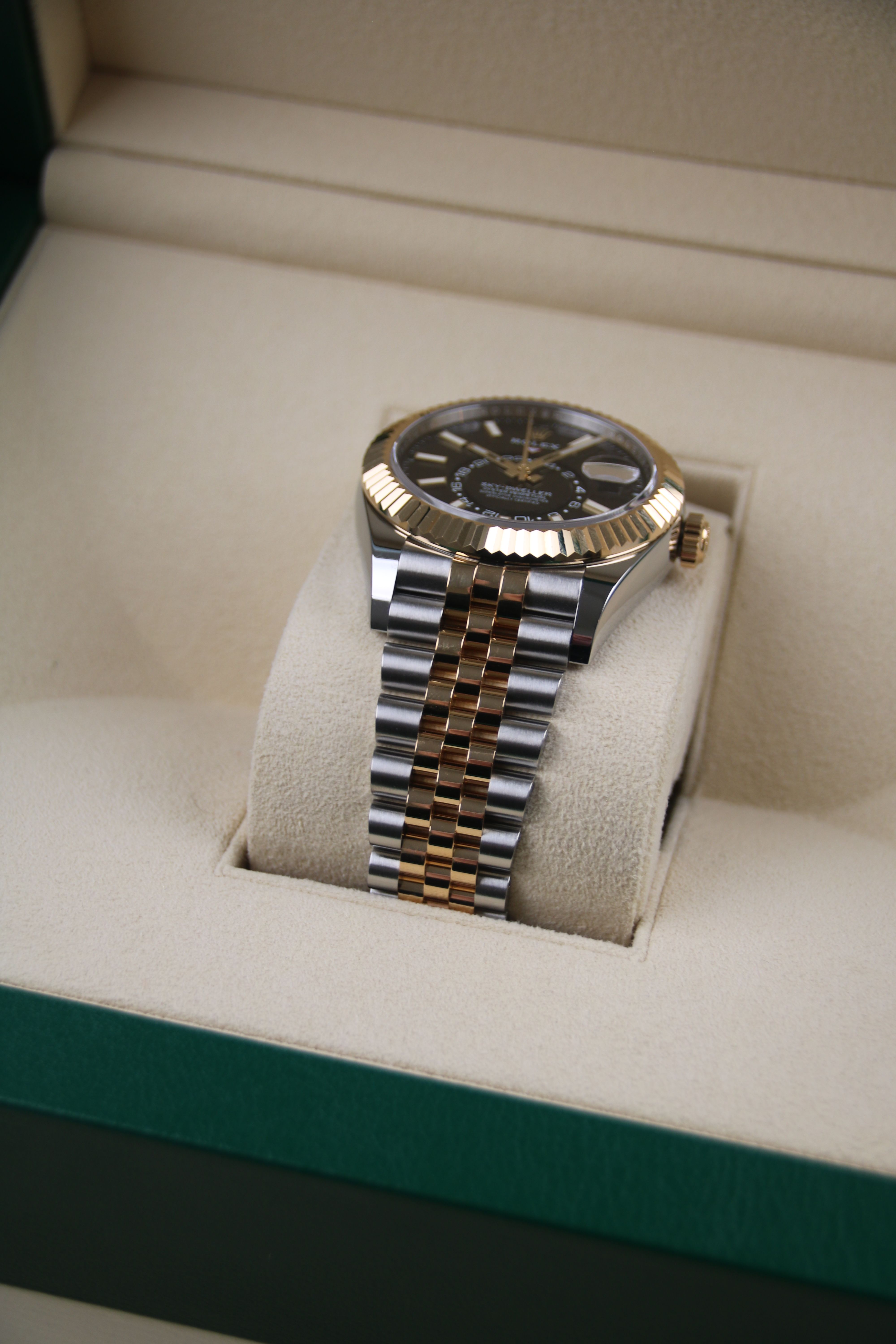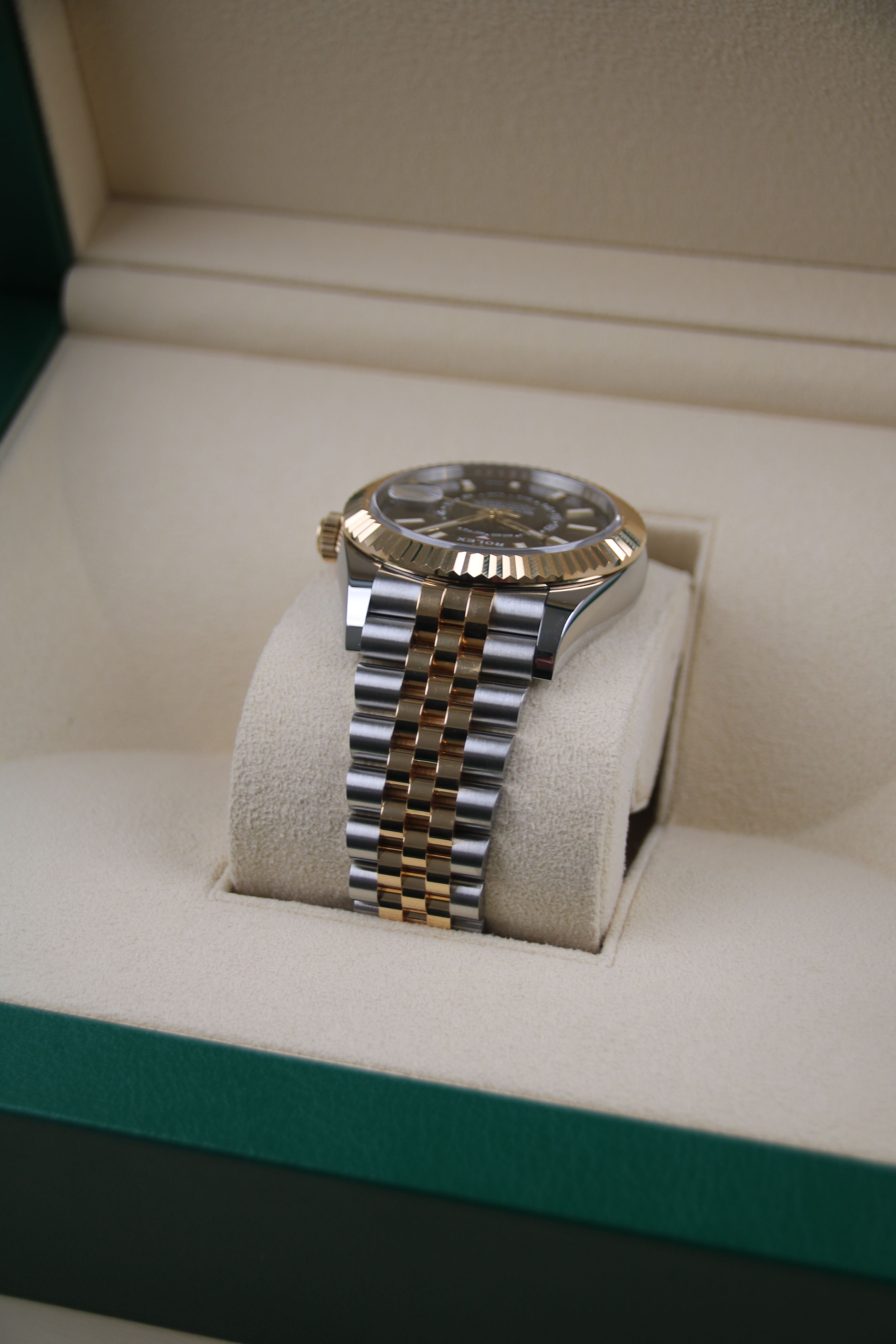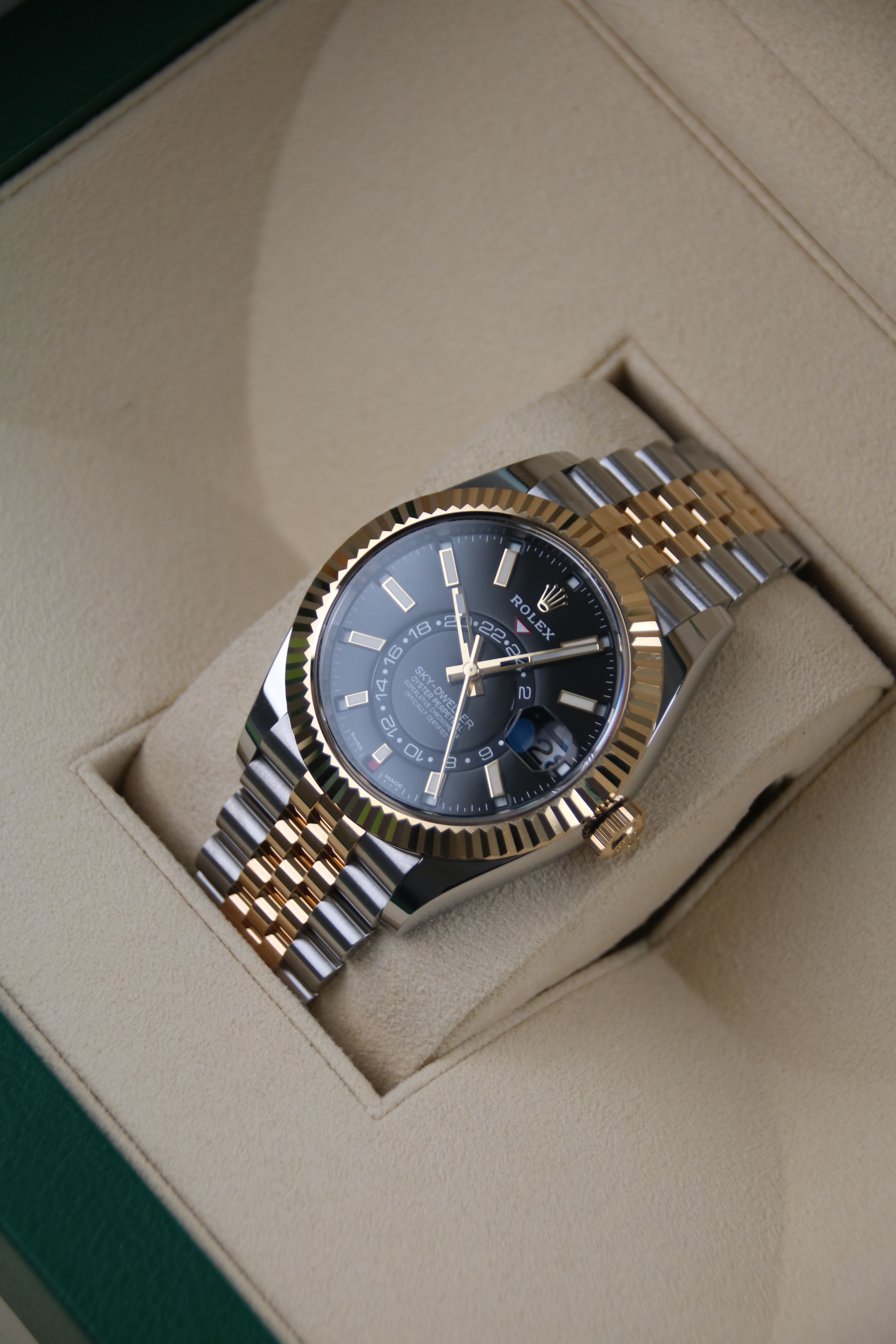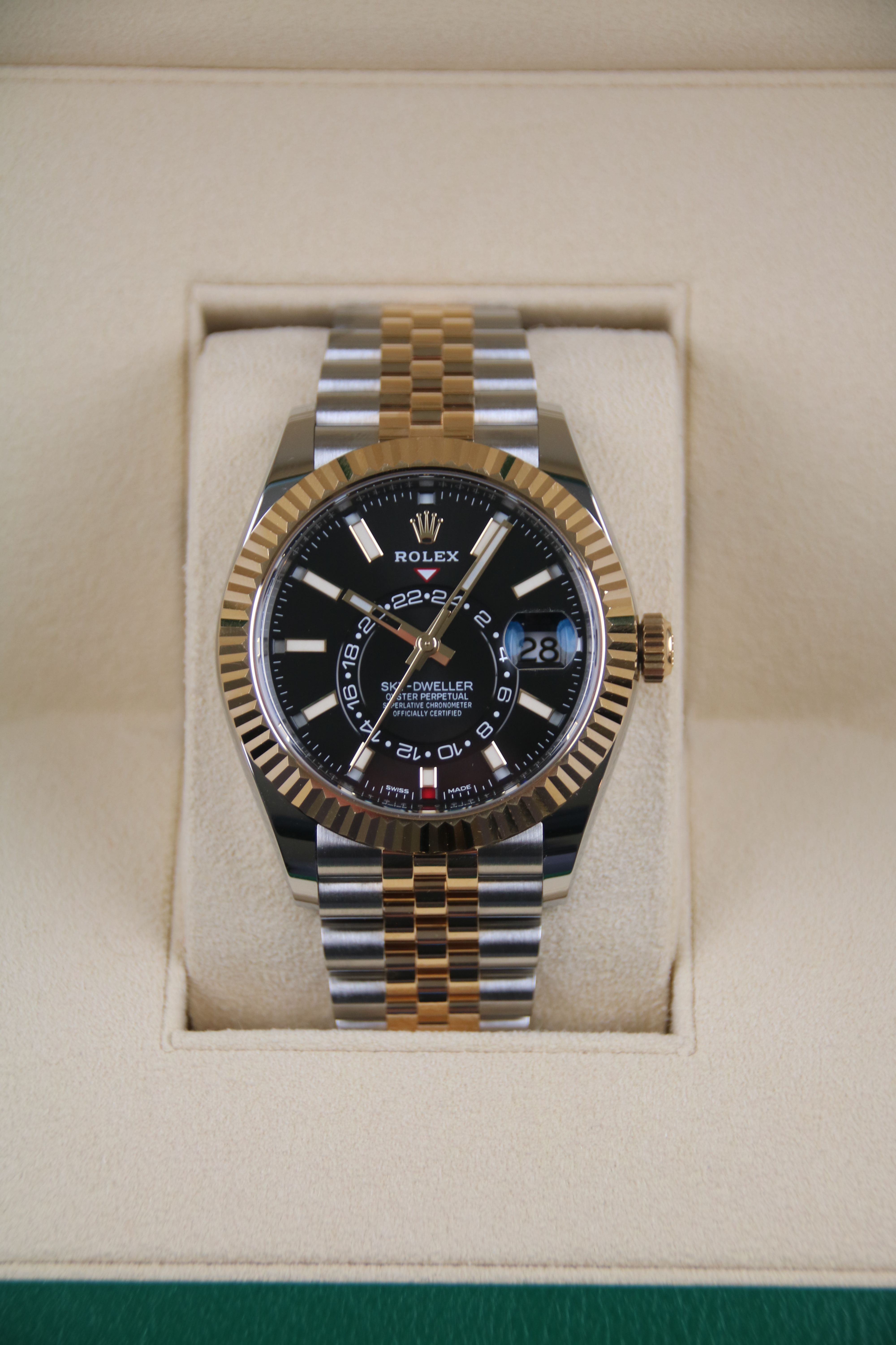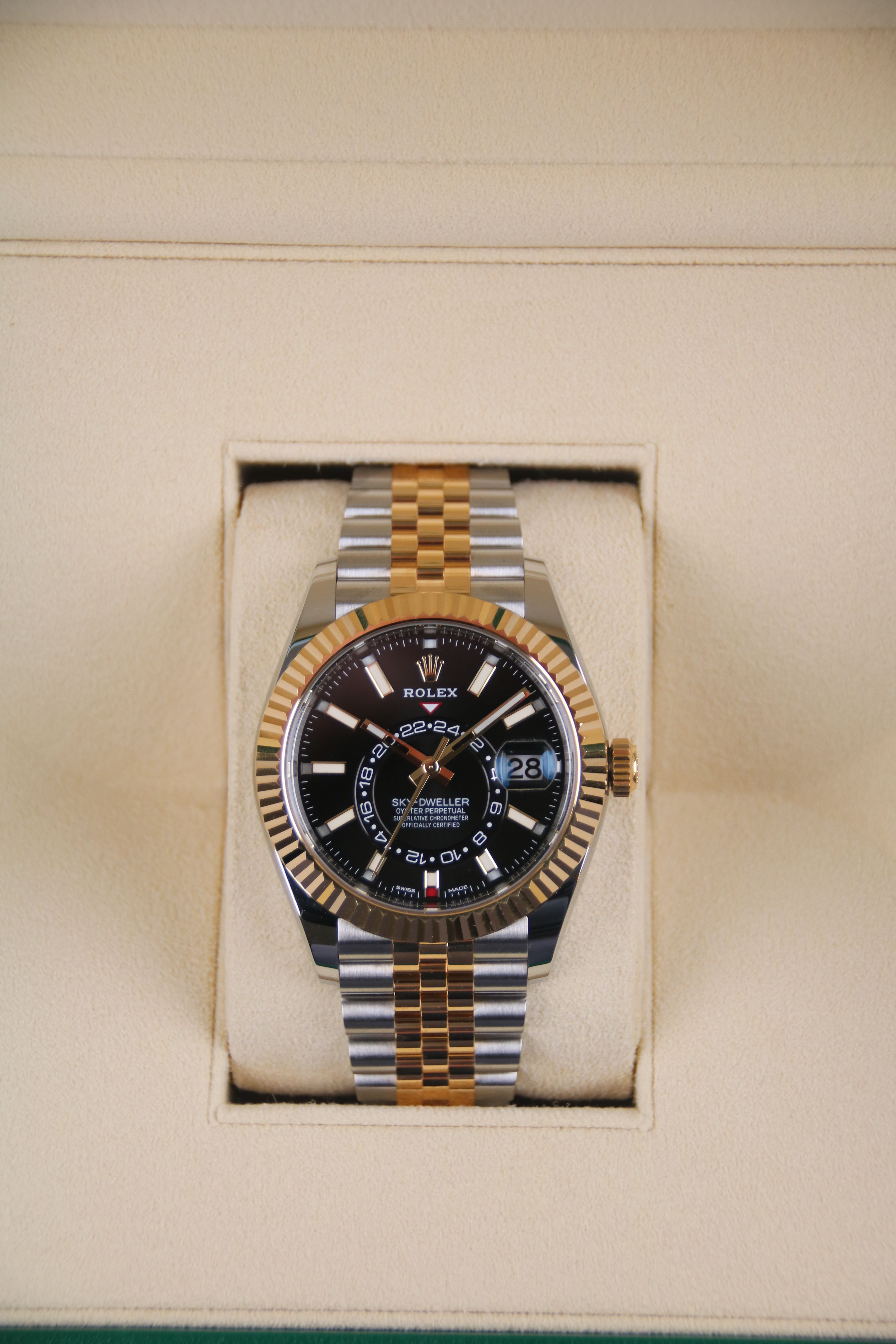 For sale is a two tone Rolex Sky-Dweller reference 326933 with jubilee bracelet.