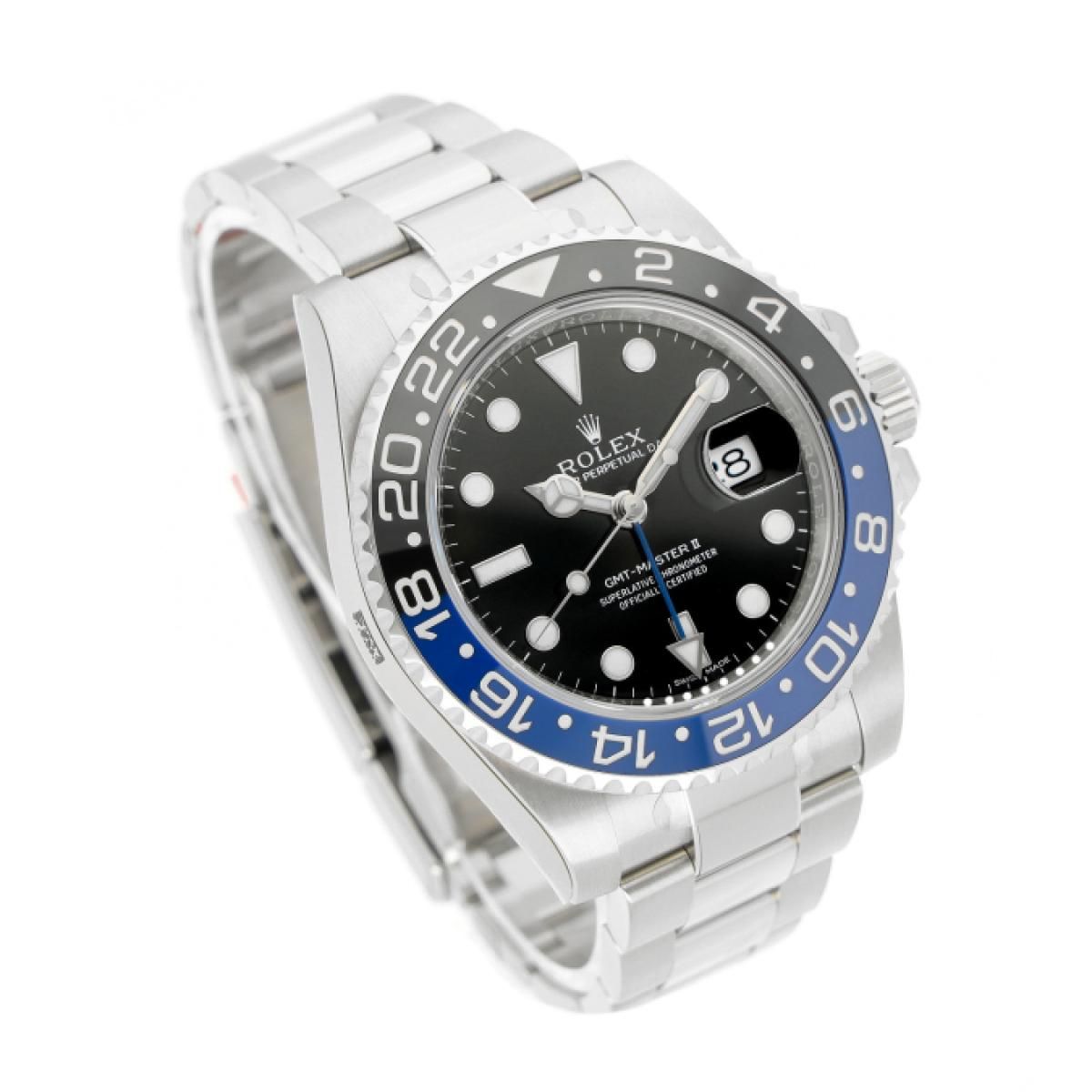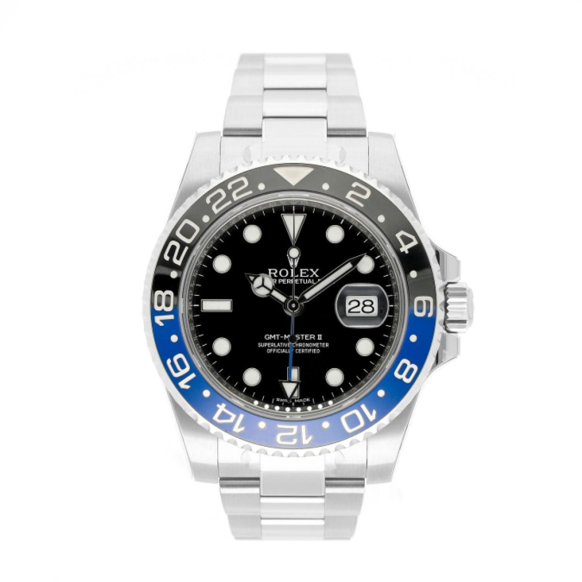2013 Rolex GMT-Master II with a 40mm stainless steel case and folding clasp. This men's Rolex watch is in unworn condition.