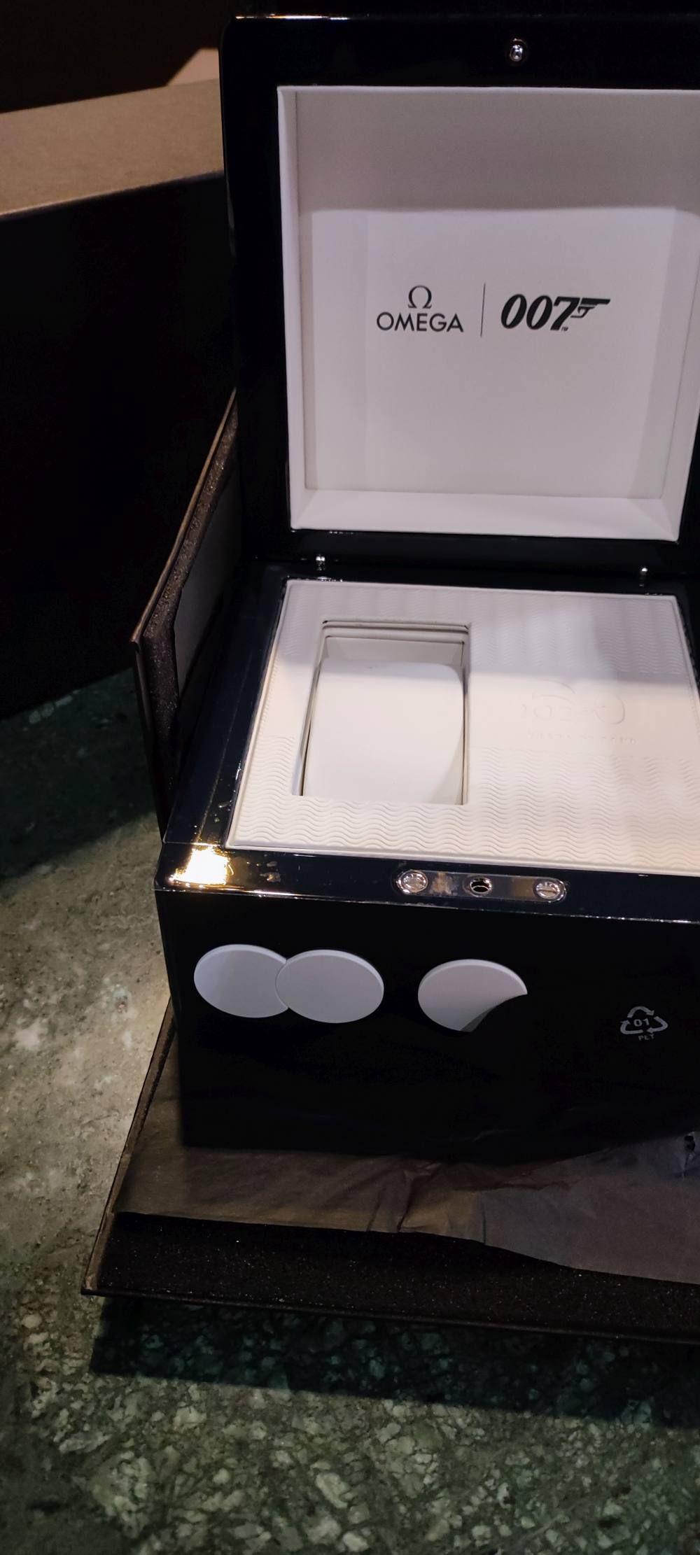 The watch has never been worn. Full set. With Original Omega box, booklets and warranty.