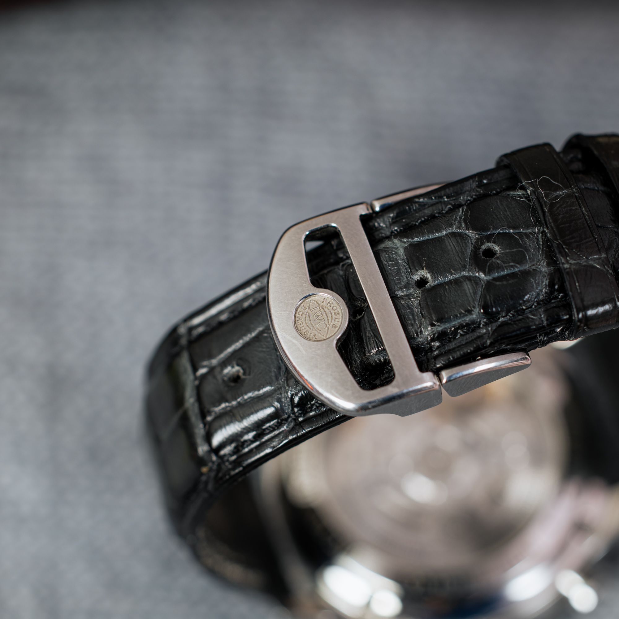 The classic Portugieser case, slim bezel, and long, elegant lugs give the watch refined, slightly vintage proportions. It remains one of the most recognizable chronographs on the market, combining minimalism with sophisticated design.