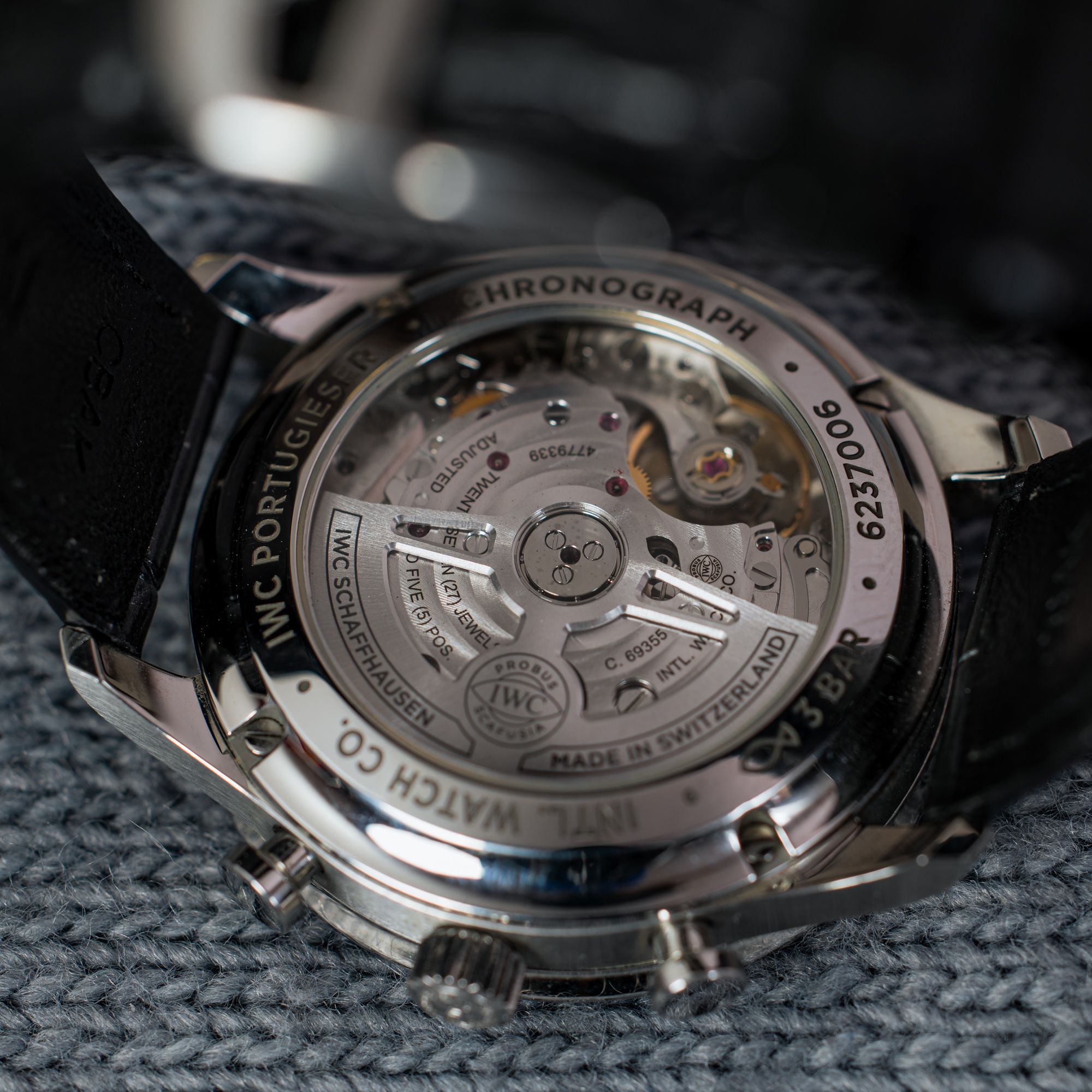 Inside beats the automatic IWC Caliber 69355 — a modern in-house chronograph movement with a column wheel, delivering excellent precision and reliability.
