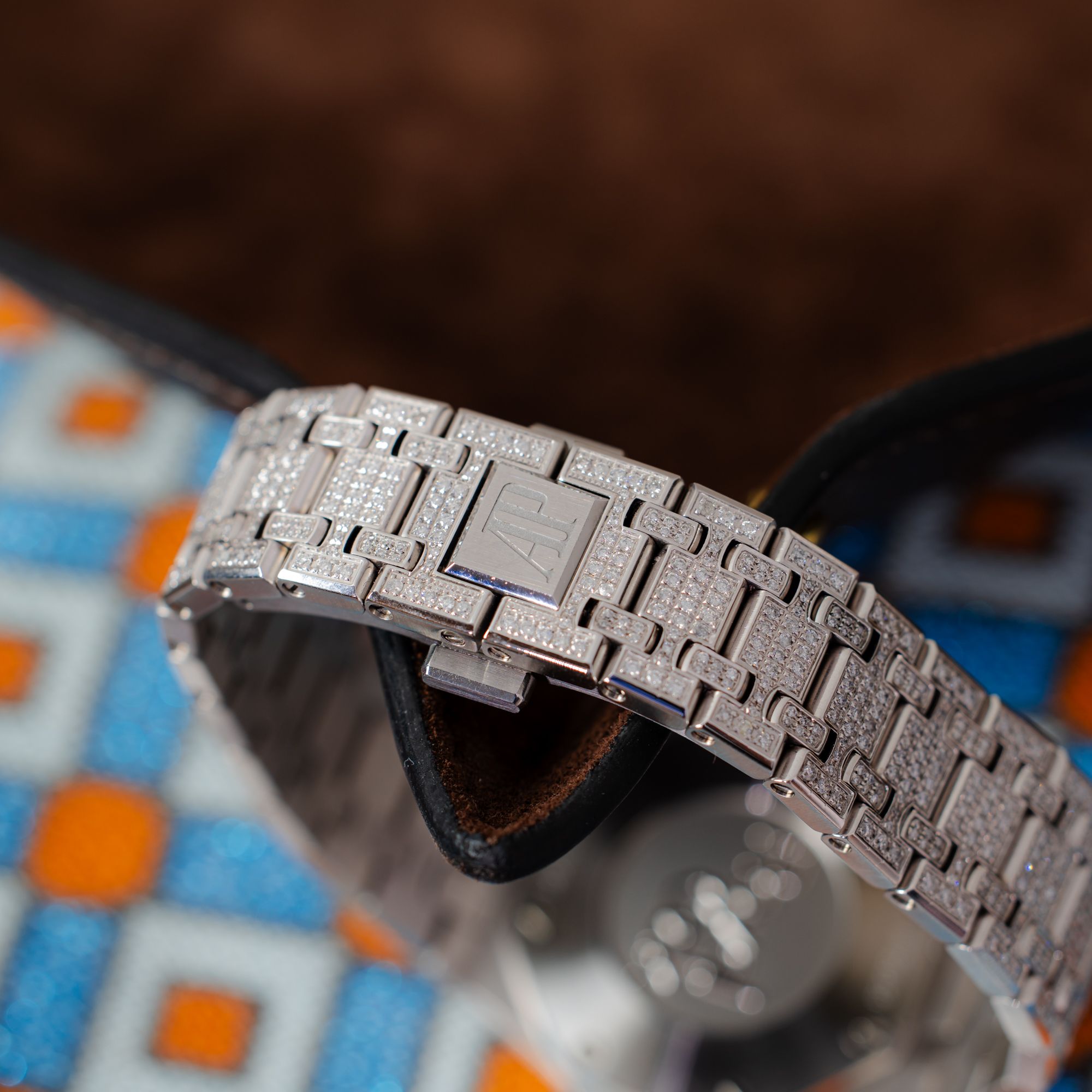 This time something truly exceptional — a jewelry-inspired, dazzling interpretation of one of the most iconic and desirable ladies’ watches in the world. The Royal Oak in its Custom Iced version combines legendary design with a bold, high-jewelry aesthetic.