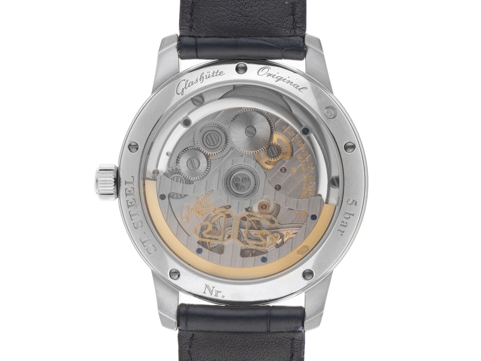 Glashütte Original Senator Excellence Panoramadatum Mondphase Stahl Automatik Armband Krokoleder Faltschließe