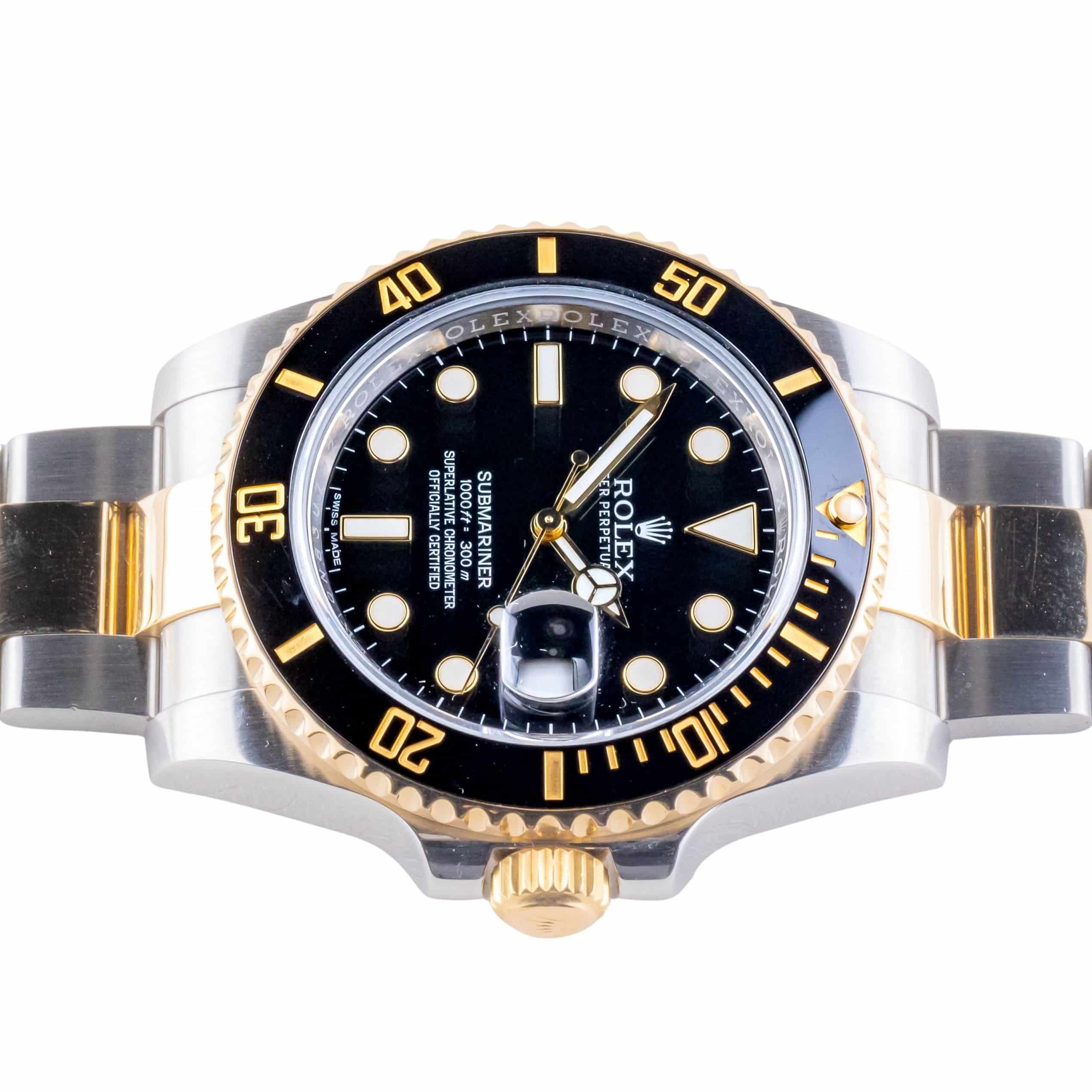 Rolex Submariner Date reference 116613LN from 2017 including full set. The Submariner Date measures a 40mm Gold/ stainless steel case, a Gold/ stainless steel Oyster bracelet w/ Oysterlock clasp and a ceramic (rotatable) bezel. The Submariner Date 116613LN features an automatic movement caliber 3135, a scratch resistance sapphire crystal, and a black dial with chromalight display.