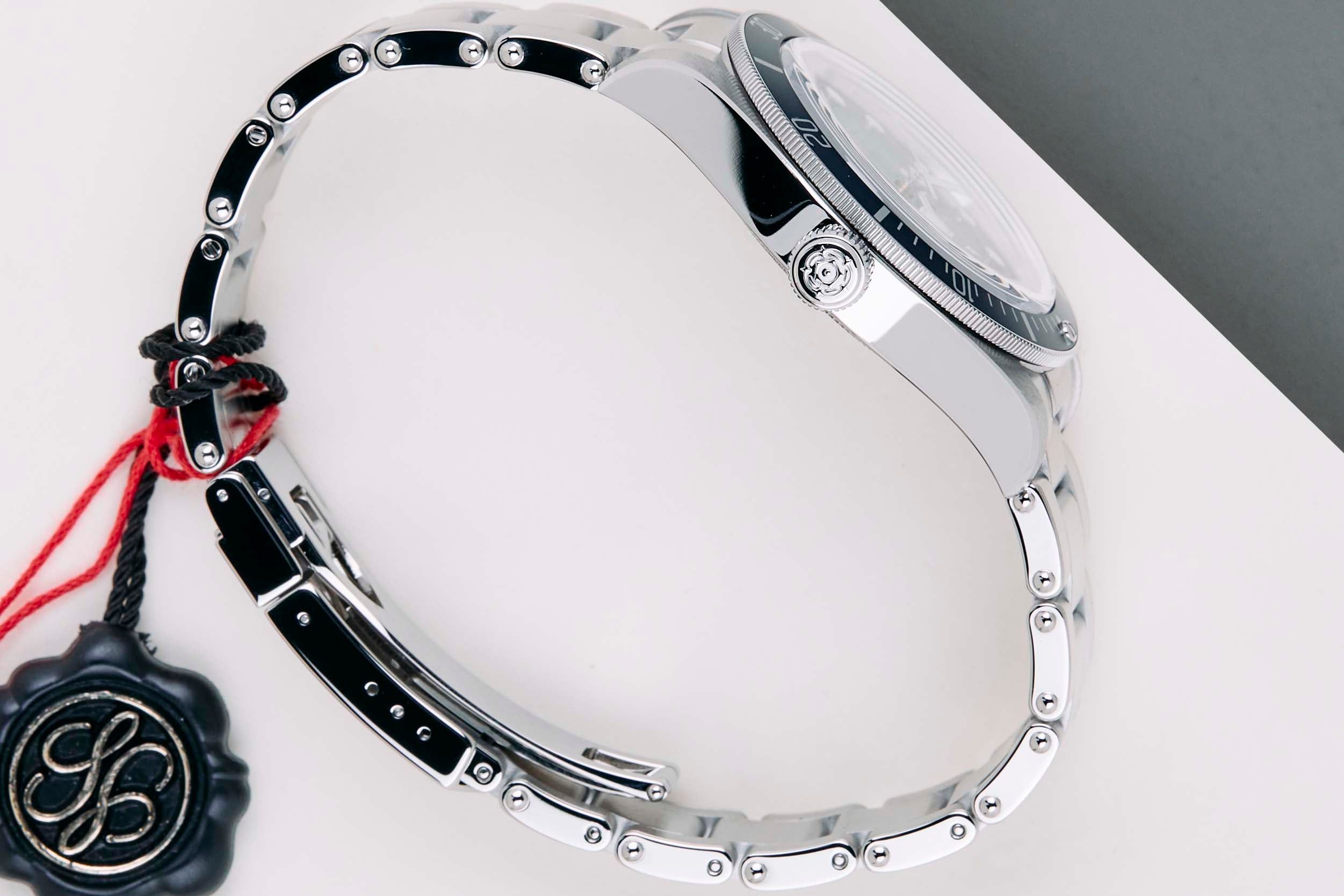 - Minor signs of wear such as hairline marks or small surface scratches. Case, bezel, and bracelet retain sharp edges and overall form. May have been professionally polished without affecting the original contours. Fully functional mechanically.
